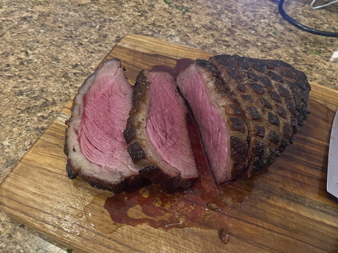 I’ve made picanha a few times in the Weber kettle in a more churrasco style, and I honestly prefer it that way for more crust, but this was still pretty good.