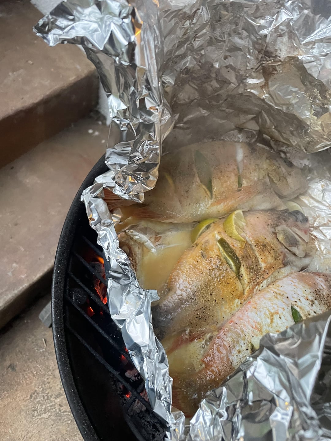 Whole tilapia, 1/4 fresh squeezed lime juice (each) pepper, and adobo. Drizzle with oil. Wrap in foil (or not) and grill. Use hands like a bear to pick apart and make tacos.