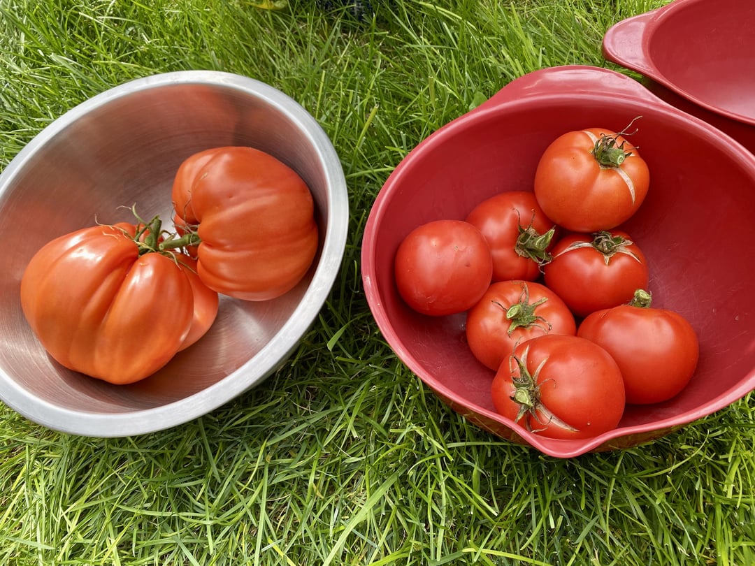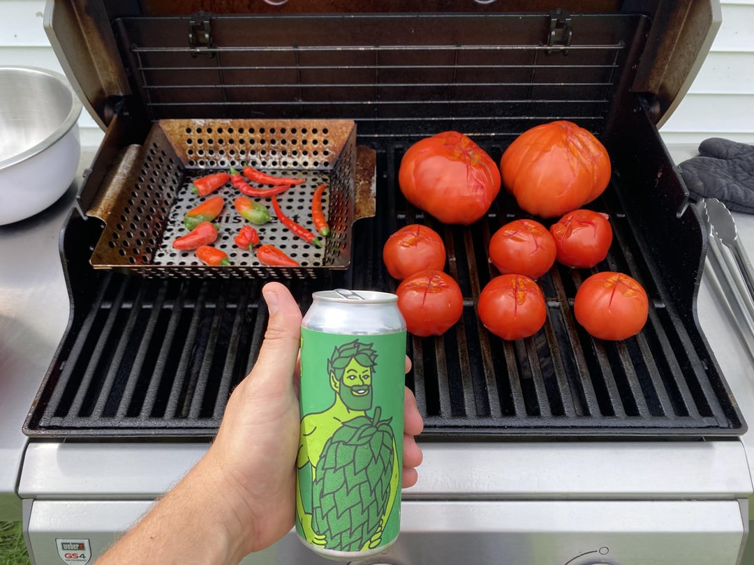 Medium8-10 largish heirloom tomatoes, roasted, pealed and chopped1 large white onion, chopped, 1½ cups3 garlic cloves, finely chopped1 cup apple cider vinegar½ cup chopped cilantro2 teaspoons dried oregano½ teaspoon cumin2 teaspoons kosher salt1 – 2 tablespoons sugar to taste