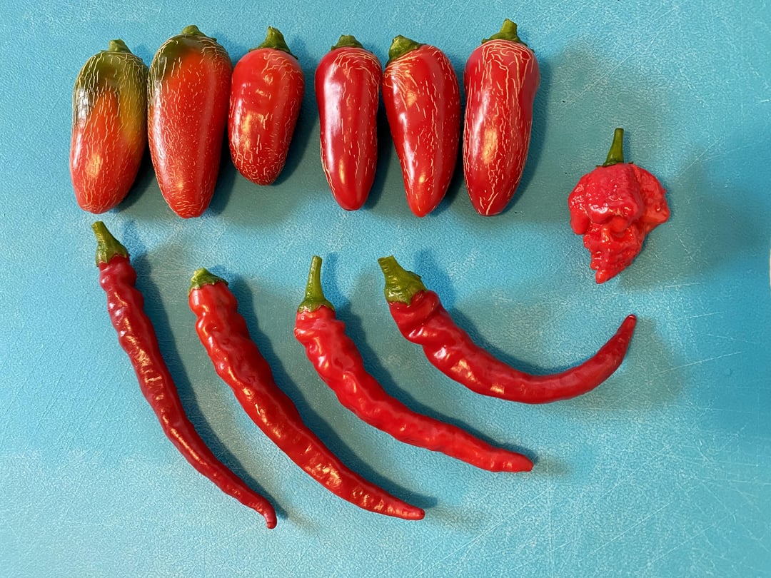 Another 3 Red Jalapeños, roasted and chopped + seeds and veins from the Medium Salsa