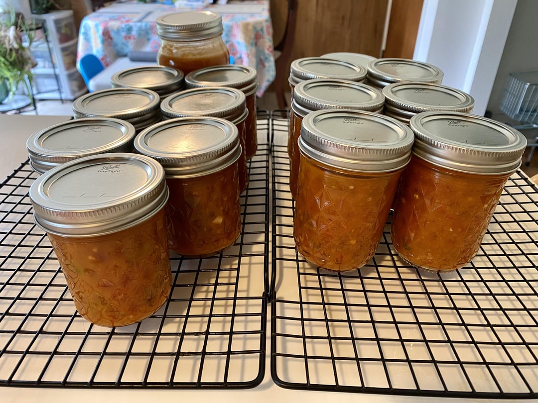 Decant finished Salsa into jars, amounts will vary but around 5 pints worth.
