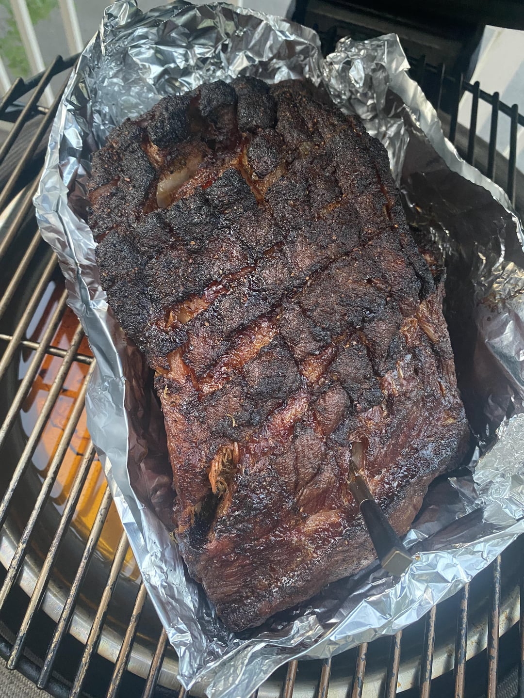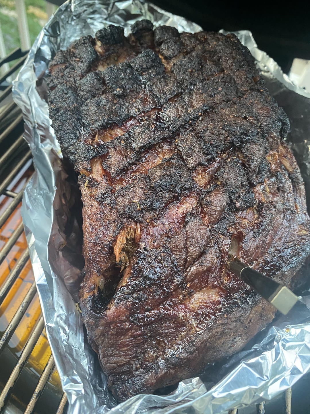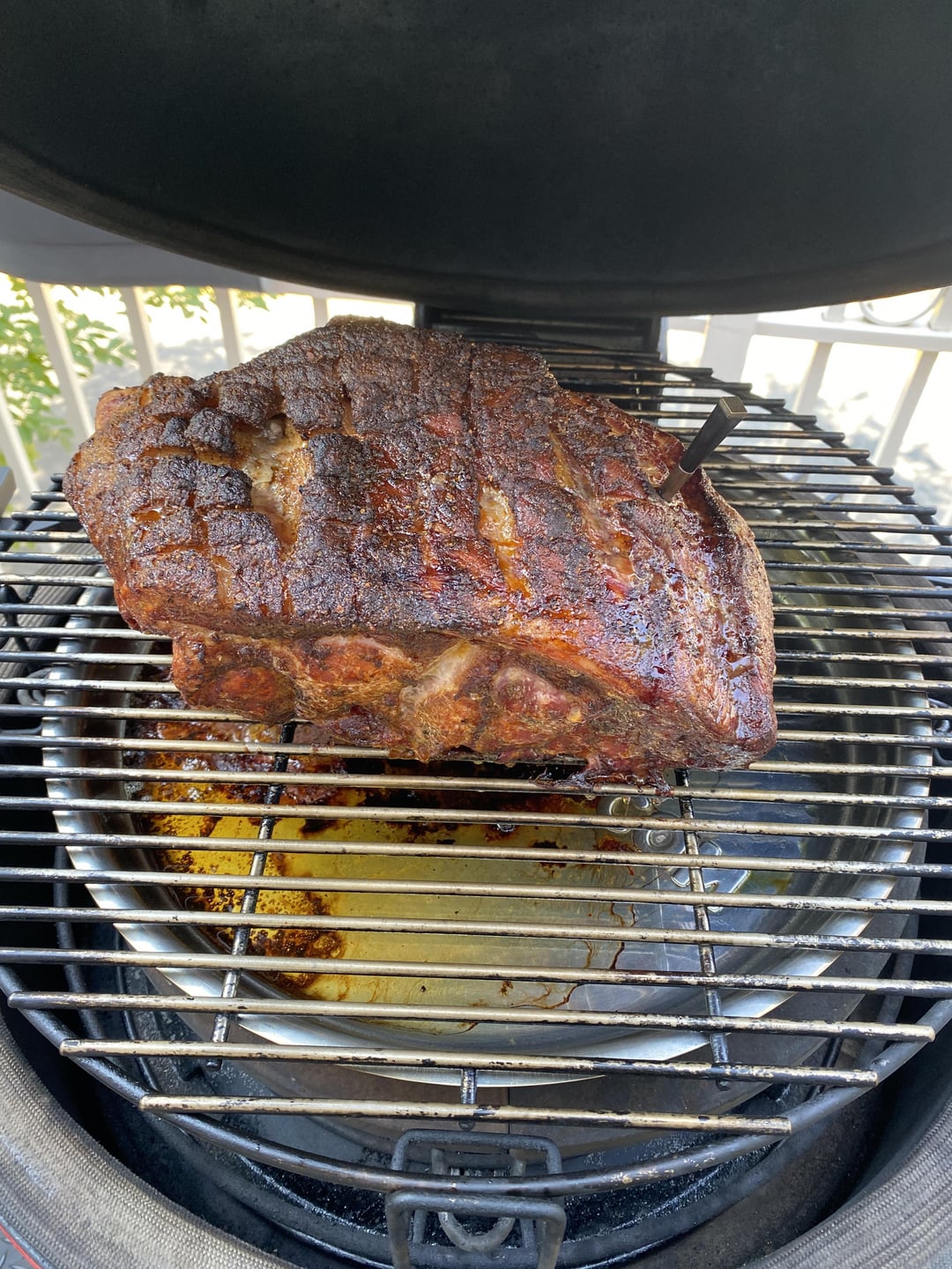 Slow cooked to 170F before wrapping it in aluminum foil. Then cooked until 203F and maintained it at that temperature for 1 hour before taking it off grill. The rest lasted until 155F was reached. Total time lasted ~9 hours. I’m very happy with my first attempt.