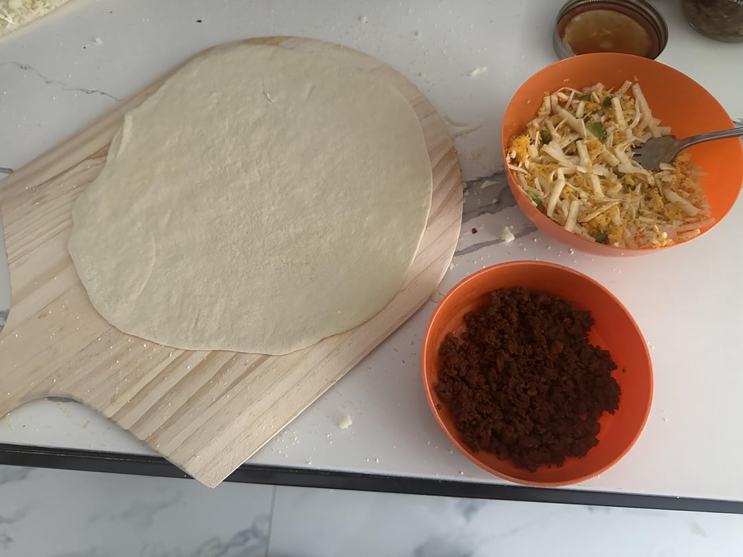it’s more like an ’empanada’ i think the only mexican thing here is that you used salsa picante to spice it, that you’re using crema and is that chorizo?… looks delicious tho. cheers! i agree with u/arm1niu5, it’s a tasty-looking abomination.