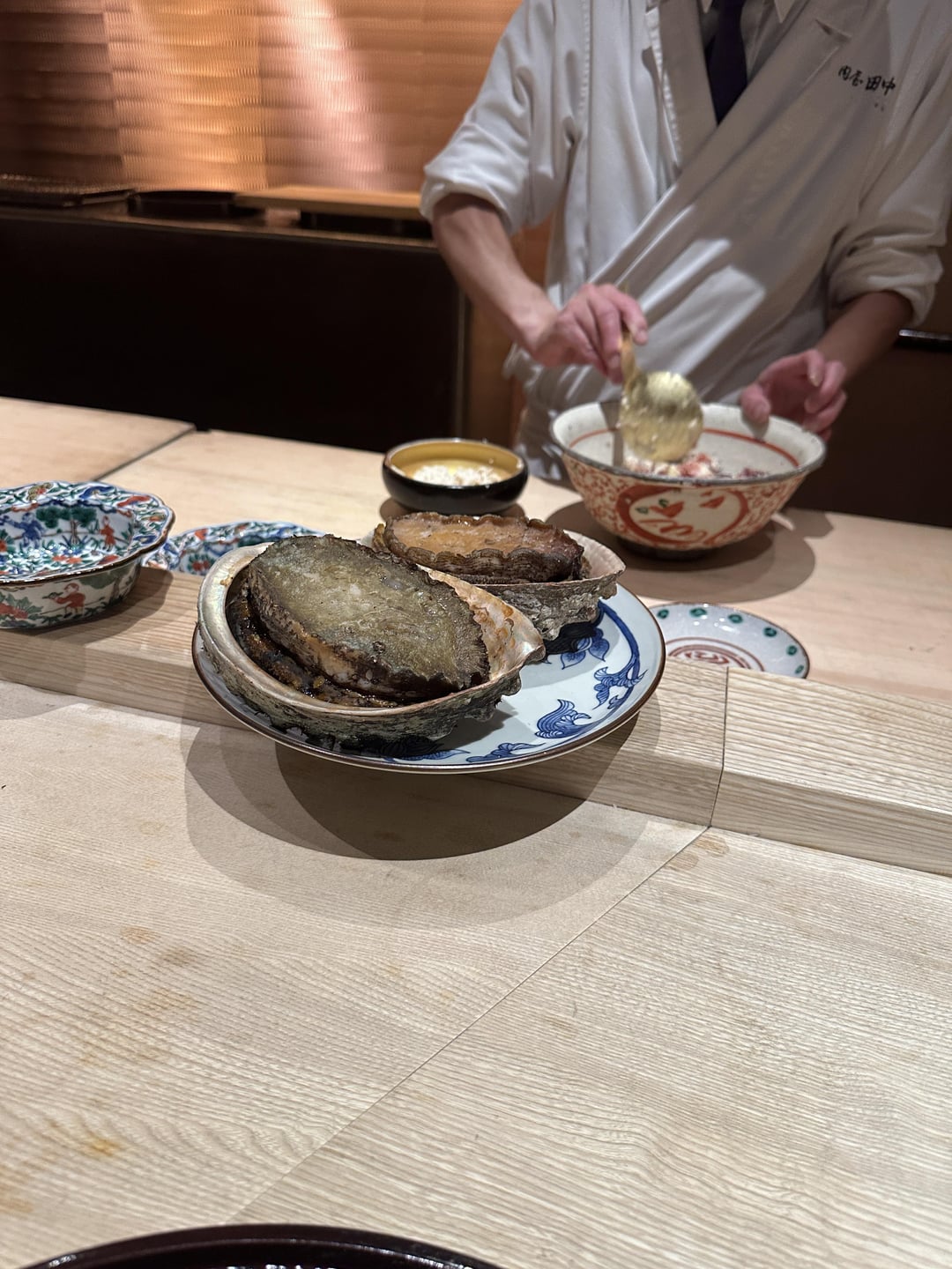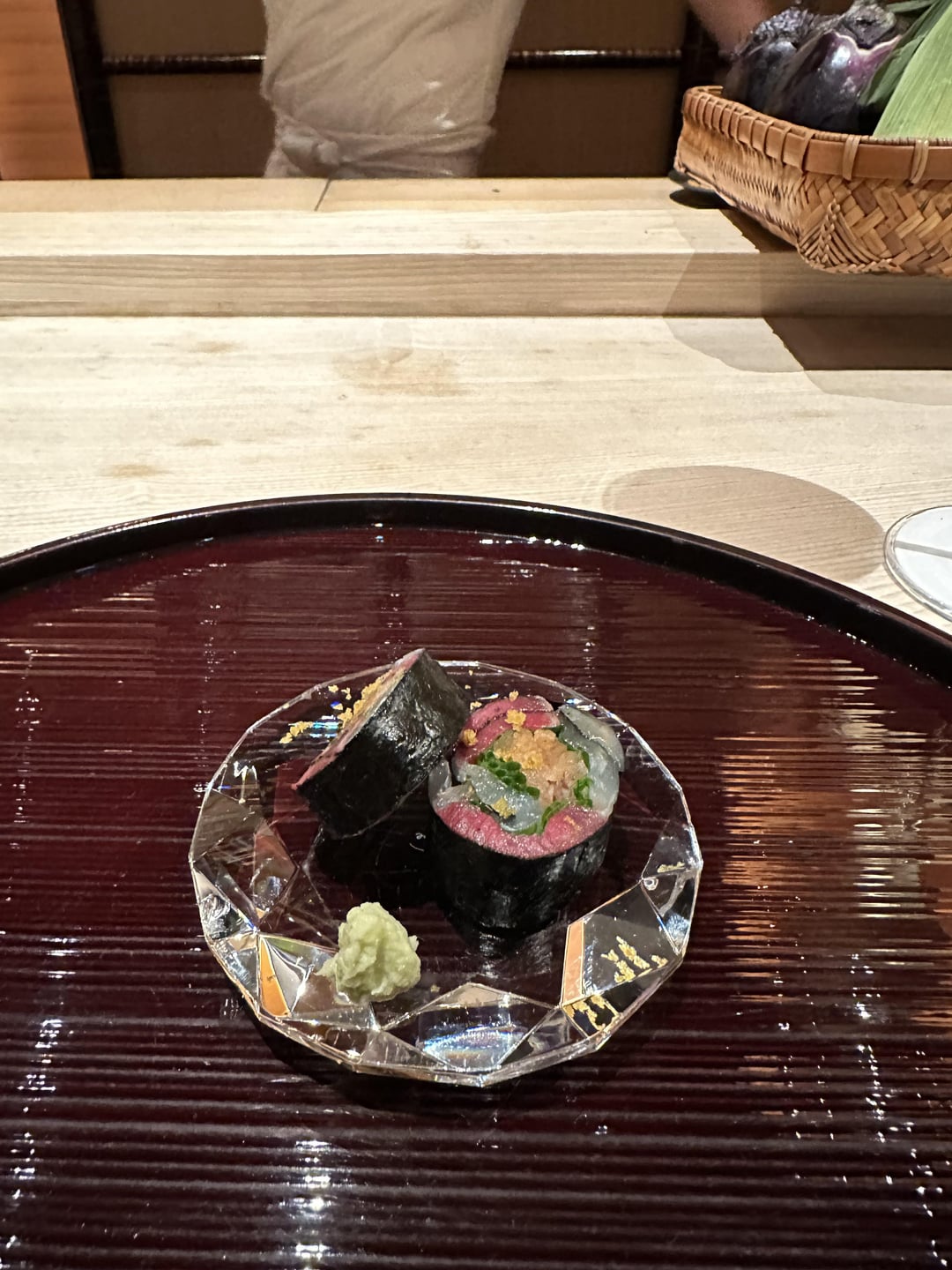 Some of the dishes included corn soup, wagyu beef wrapped in kombu seaweed and sea bass topped with mullet roe, egg plant with fig, wagyu sashimi, abalone with liver sauce and sauce made with abalone extract, wagyu with daikon, summer ayu soup, cold noodles, stir fried wagyu with rice, wagyu beef tongue.