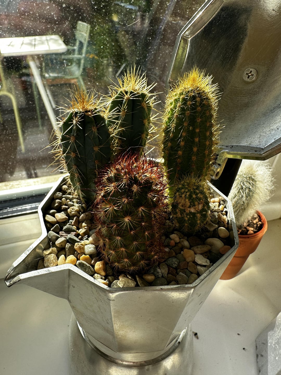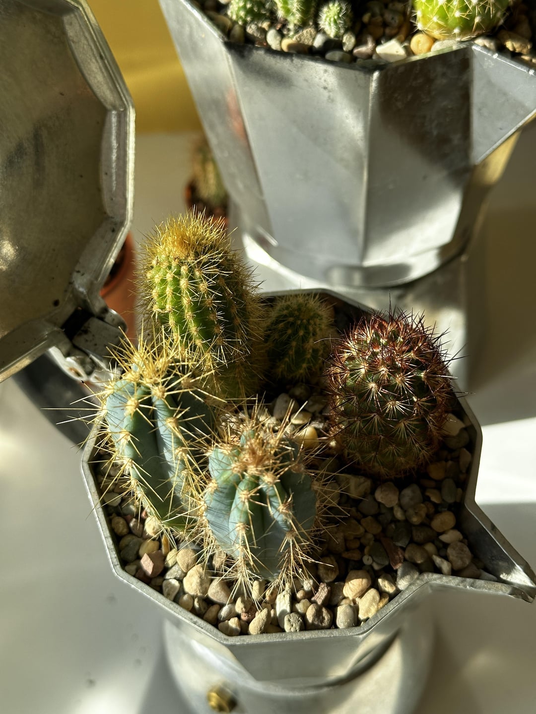 Recently made this cacti area from old Moka pots for the shelf next to my coffee station by Thousand_Hands_4032 3 Comments Good_Bad-Marty 2 years ago A whattttt..this is sweet libertyfordean 2 years ago FR nicely done! AccomplishedLocal729 2 years ago A few days ago I found an old mocha and I thought it would be a good idea to put some plants inside it. I realize that it is a great idea.Write A CommentYou must be logged in to post a comment.