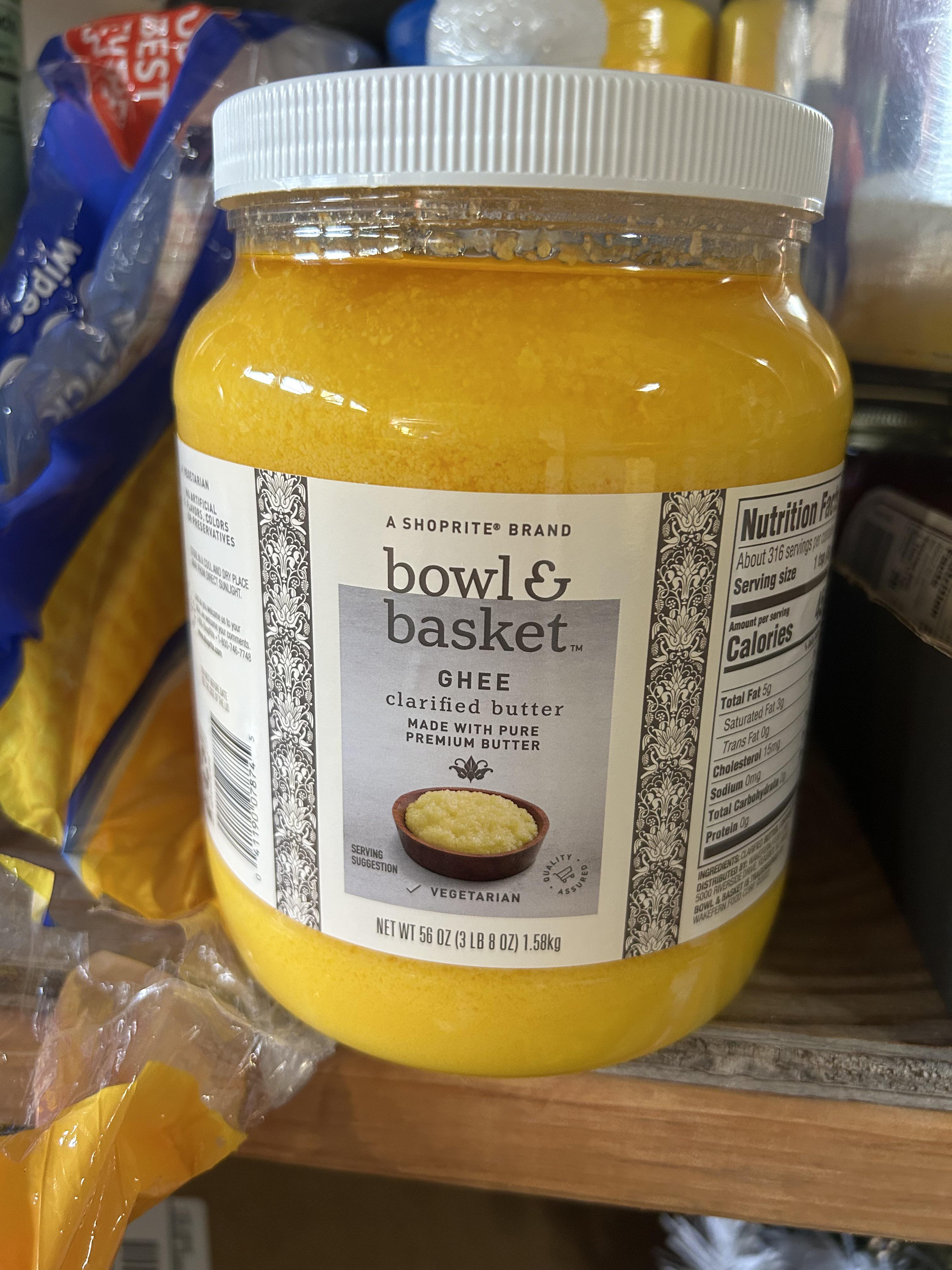 So Ghee is made specifically for the purpose of preserving it, by removing water and milk solids, etc. from it. So this is essentially just fat (or at least it’s supposed to be).