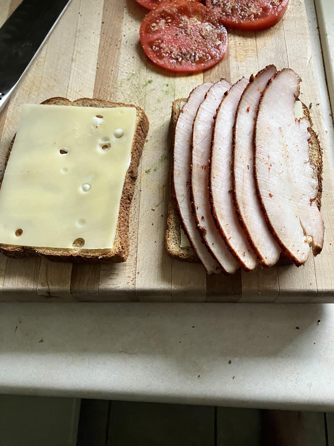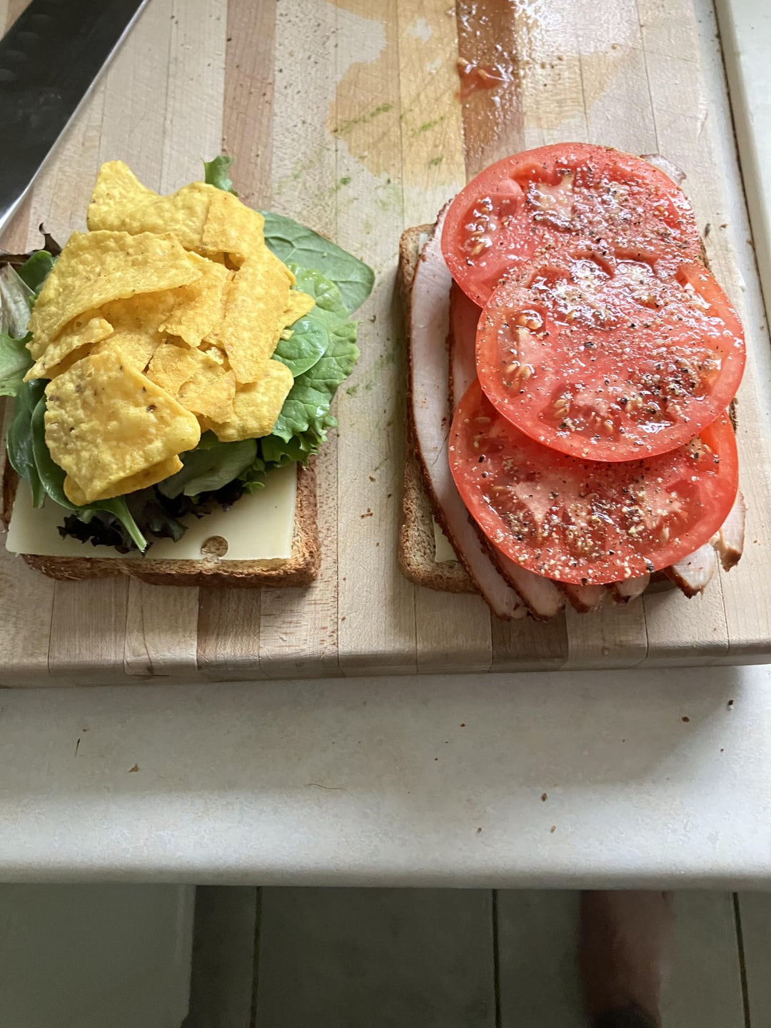 Home smoked Cajun turkey breast, homegrown tomatoes, Swiss, mixed greens (only lettuce I had), mustard Doritos, horseradish mayo by Experimentallyintoit 2 Comments Mysterious_Fix2979 2 years ago That looks real good Ok-Policy-8284 2 years ago The color palette of this sandwich is incredible.Write A CommentYou must be logged in to post a comment.