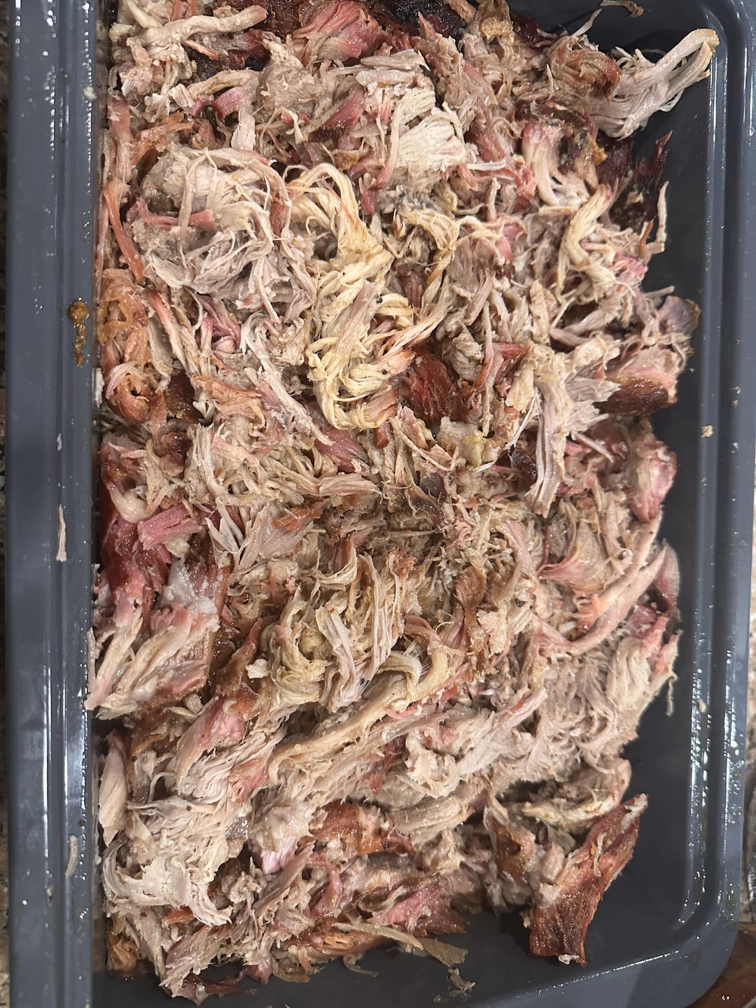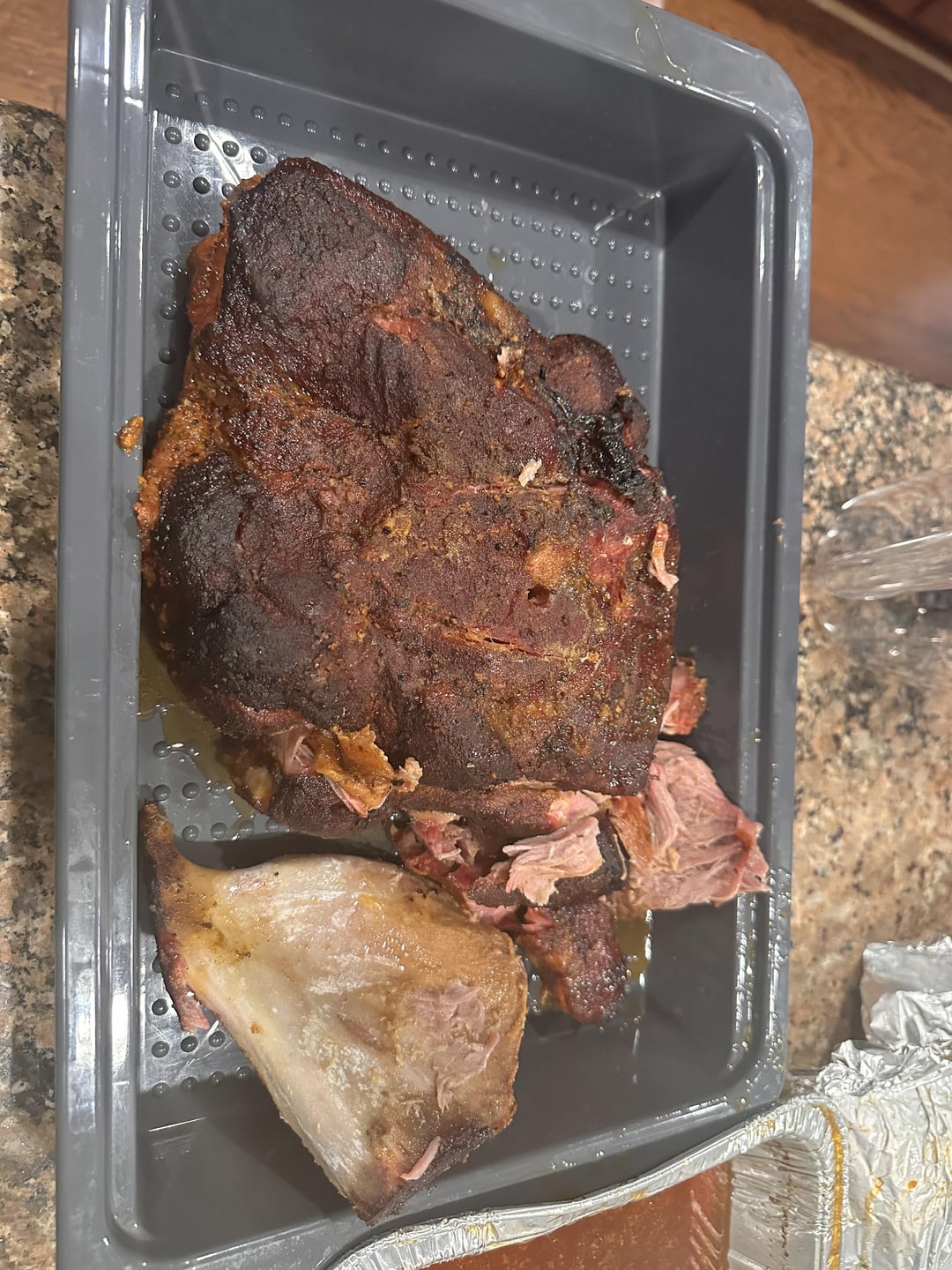 Did my first 9lb pork butt on the Traeger. Seasoned with Holy gospel and honey hog. 275 until it hit 165, then into a pan with a stick of butter, cup of brown sugar, and apple juice. Wrapped it up, and into oven at 275 until it hit 203 then turned it down to keep warm until dinner. Total cook time was 9 hours and 2 hrs on keep warm.