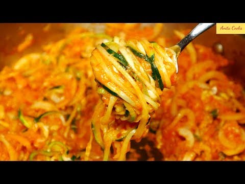 Hi Guys, today I’ll show you How to Make Zucchini Pasta, adding Butternut Squash and Potatoes. This pasta substitute is vegetarian and nutritious. Of course there is hardly any fat in this dish, so it’s extremely healthy. Healthy food has to taste good for me to actually eat and this dish is definitely tasty. All the ingredients are listed below.