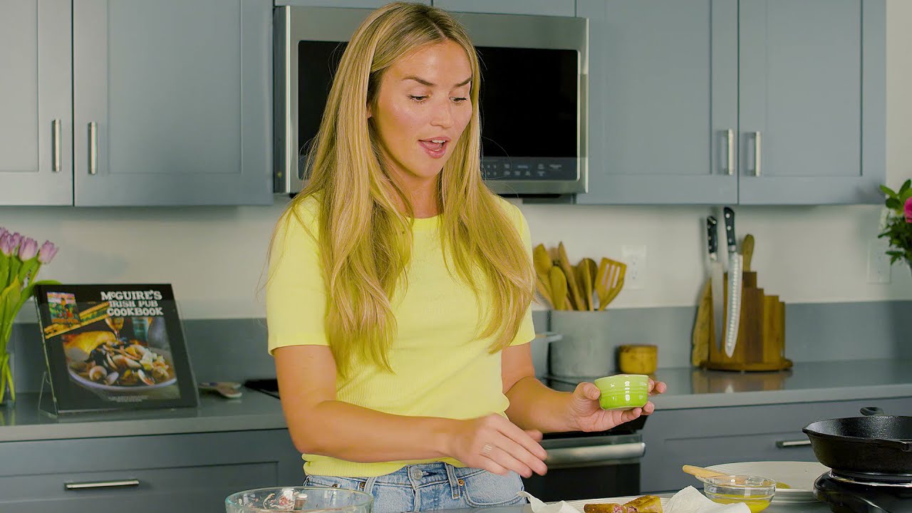 Learn how to make McGuire’s famous reuben egg rolls from our kitchen to yours! 7 Comments A Adi 5 years ago Hi Katie, thanks for sharing this recipe! Do you use a specific brand of sauerkraut? Charles Bryant 5 years ago My favorite cookbook and Restaurant! Roger Collins 5 years ago Just a little tip, to make them less soggy, just use that egg wash to seal the roll, don't brush all over the top. Then roll the uncooked eggrolls in cornstarch before putting in the pan to fry. You'll get a crispy exterior. Oh . . . lecker! 5 years ago This looks super delicious. Great work. Megan Hoggard 4 years ago LOVE THESE OMG!! Justin L 4 years ago Making tomorrow. Love how you are pretty much straight to the point! bbqstud 4 years ago Unless I missed it, it would be nice to have the actual recipe and weights of the ingredients. Thanks…good vid!1Write A CommentYou must be logged in to post a comment.