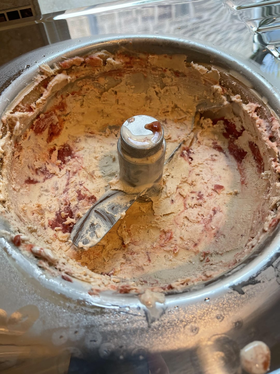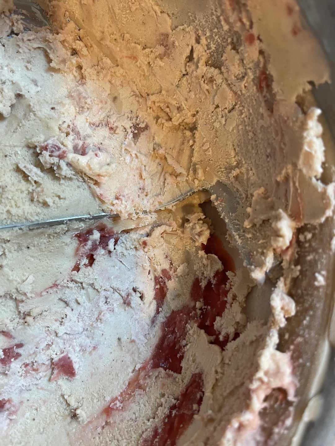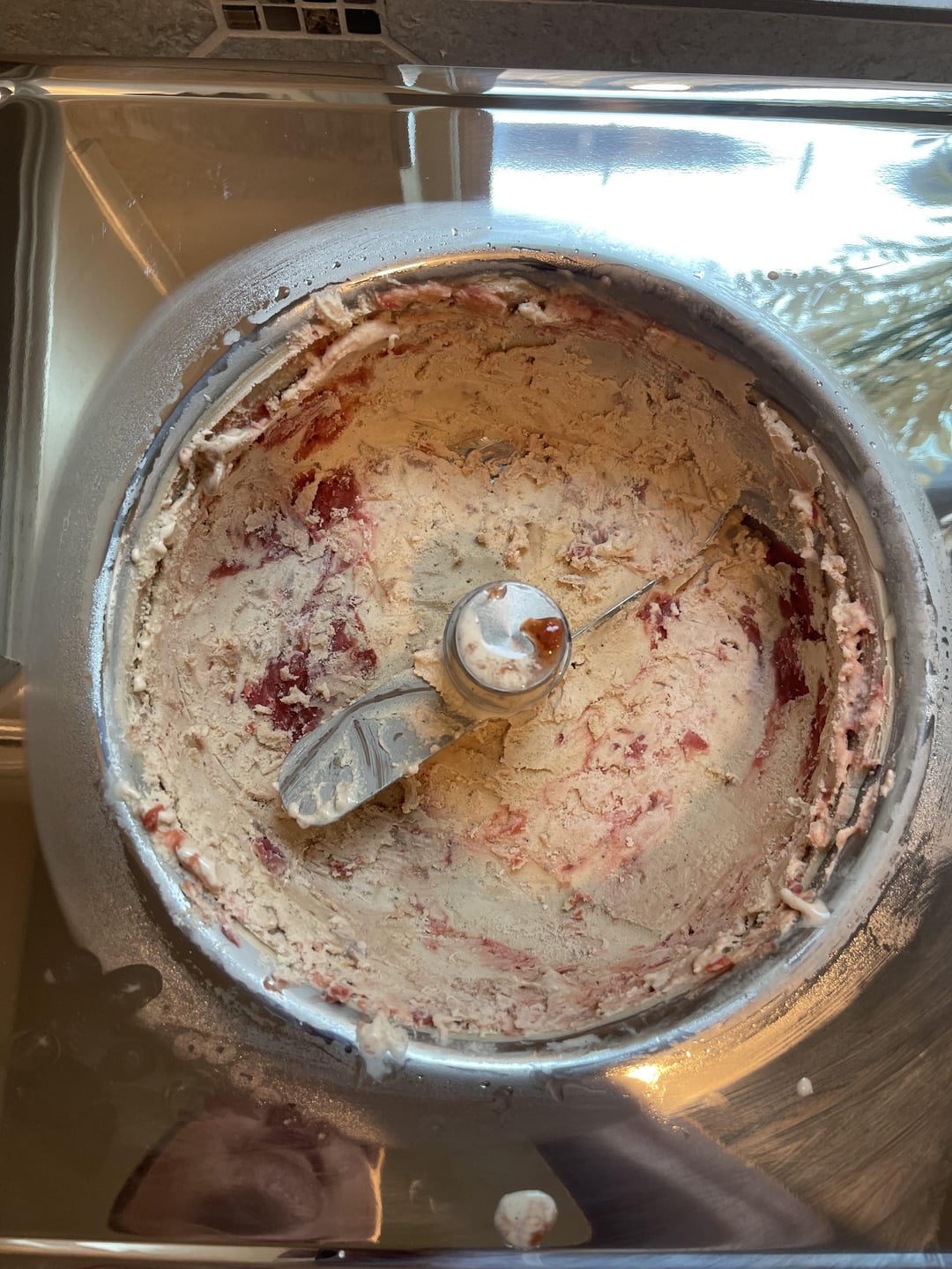 3. After 20 minutes of churning and removing any decent ice cream from the middle, the above pictures were the result