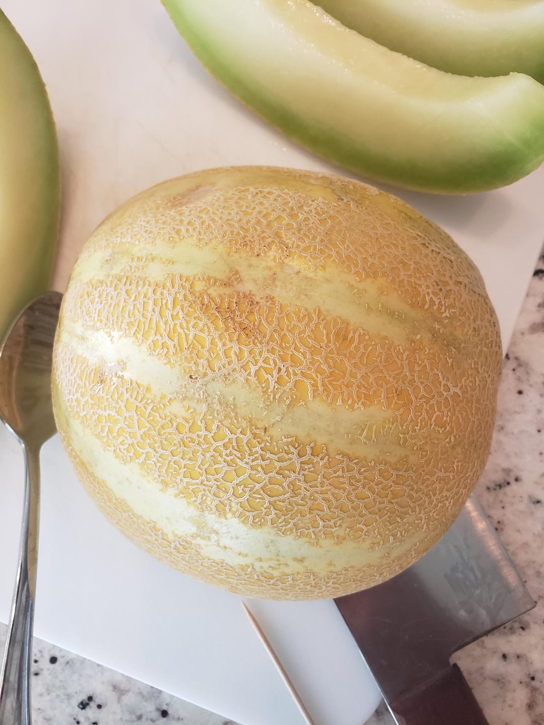 Amostar2557 2 years ago I don’t think that’s a honey dew melon. It looks more like a kandy lemon drop melon to me.