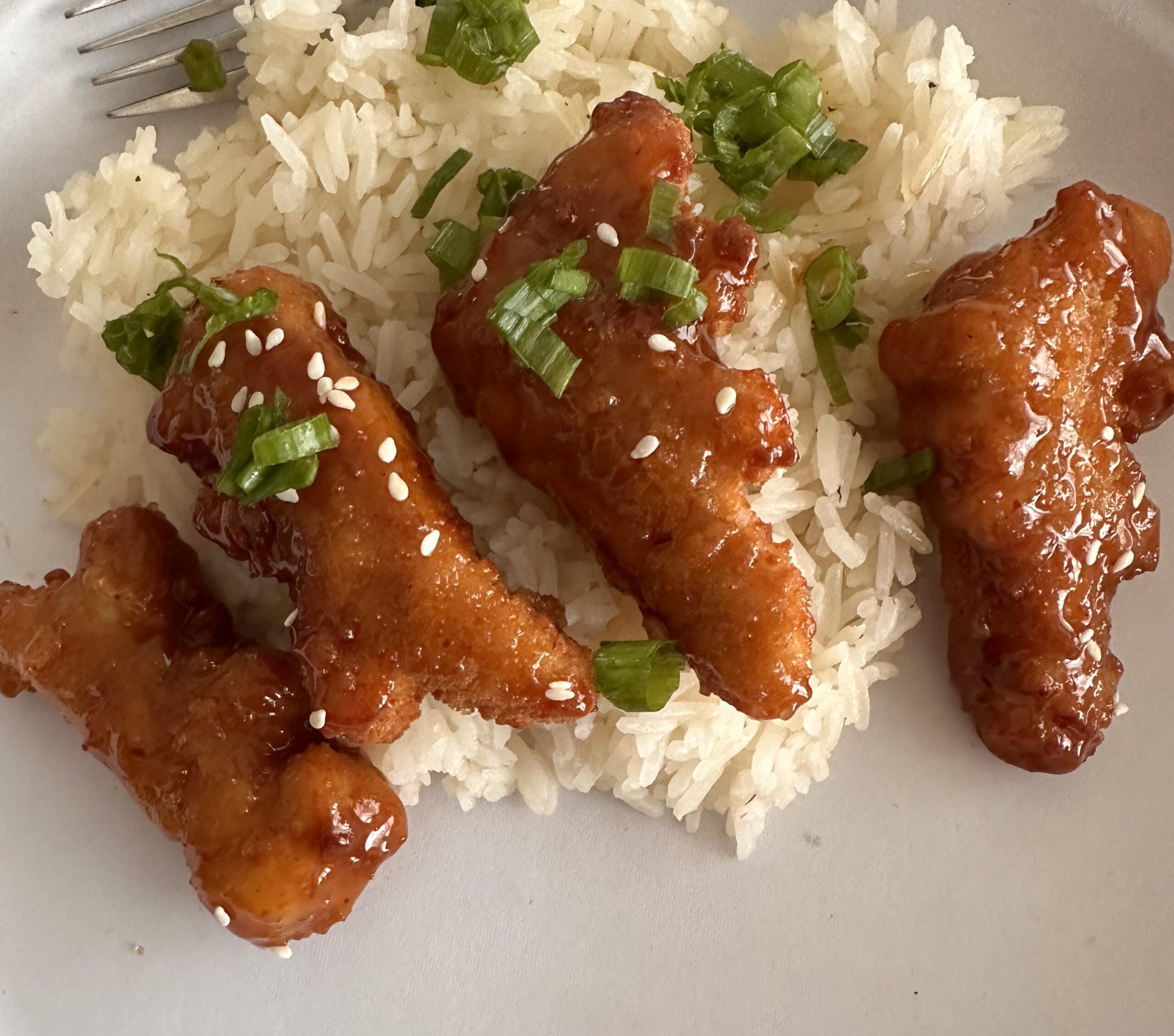 Orange chicken? I’ve made it with regular nuggets for my kids but something tells me I’d be Mom of the Year if I did it with Dino nuggets 🤣