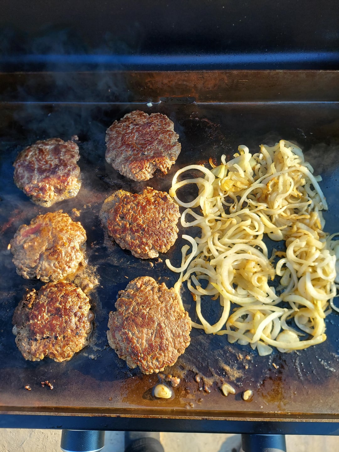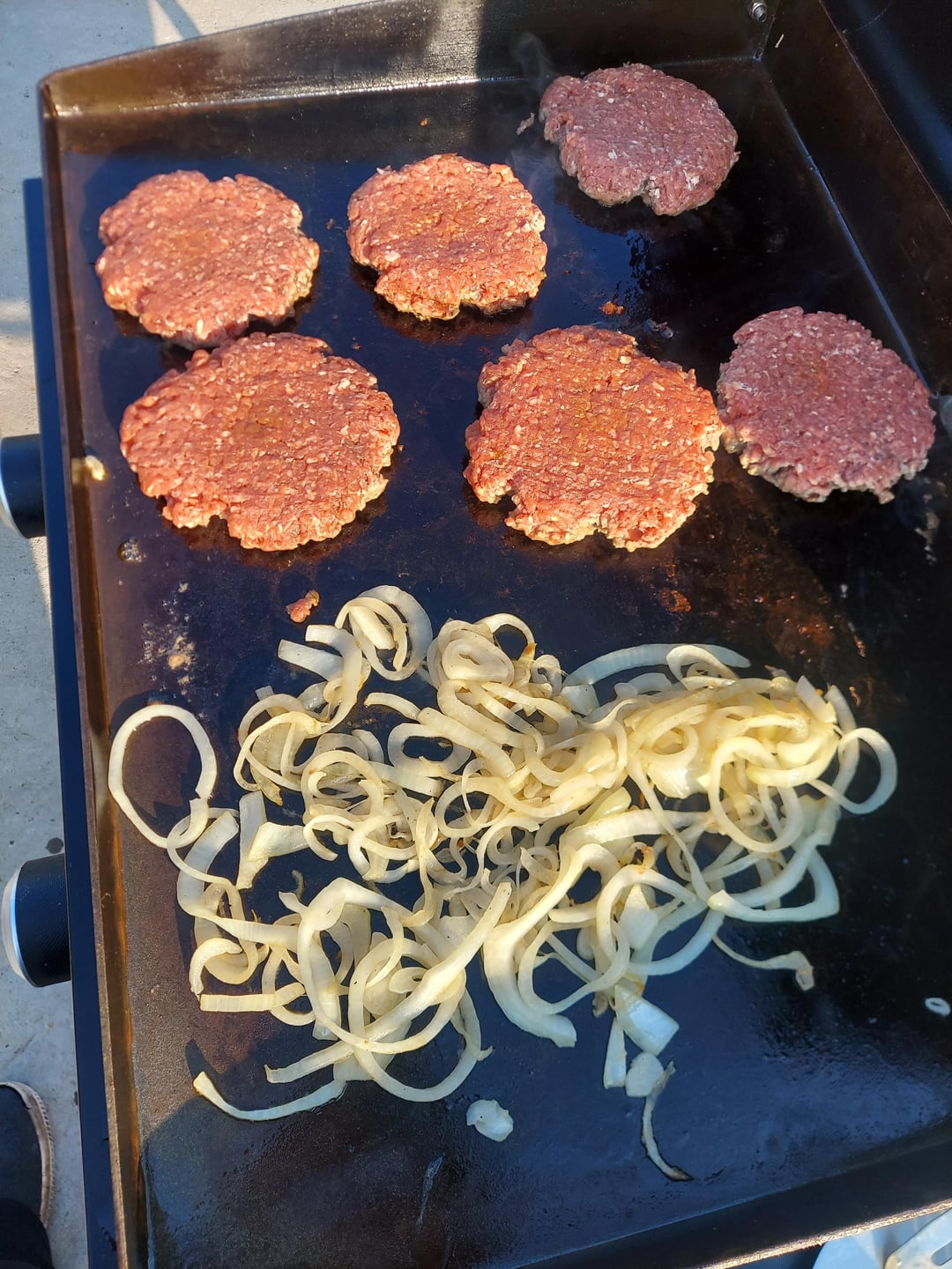 Sorry about the spelling on “say”. Didn’t sit on the onions or burgers.