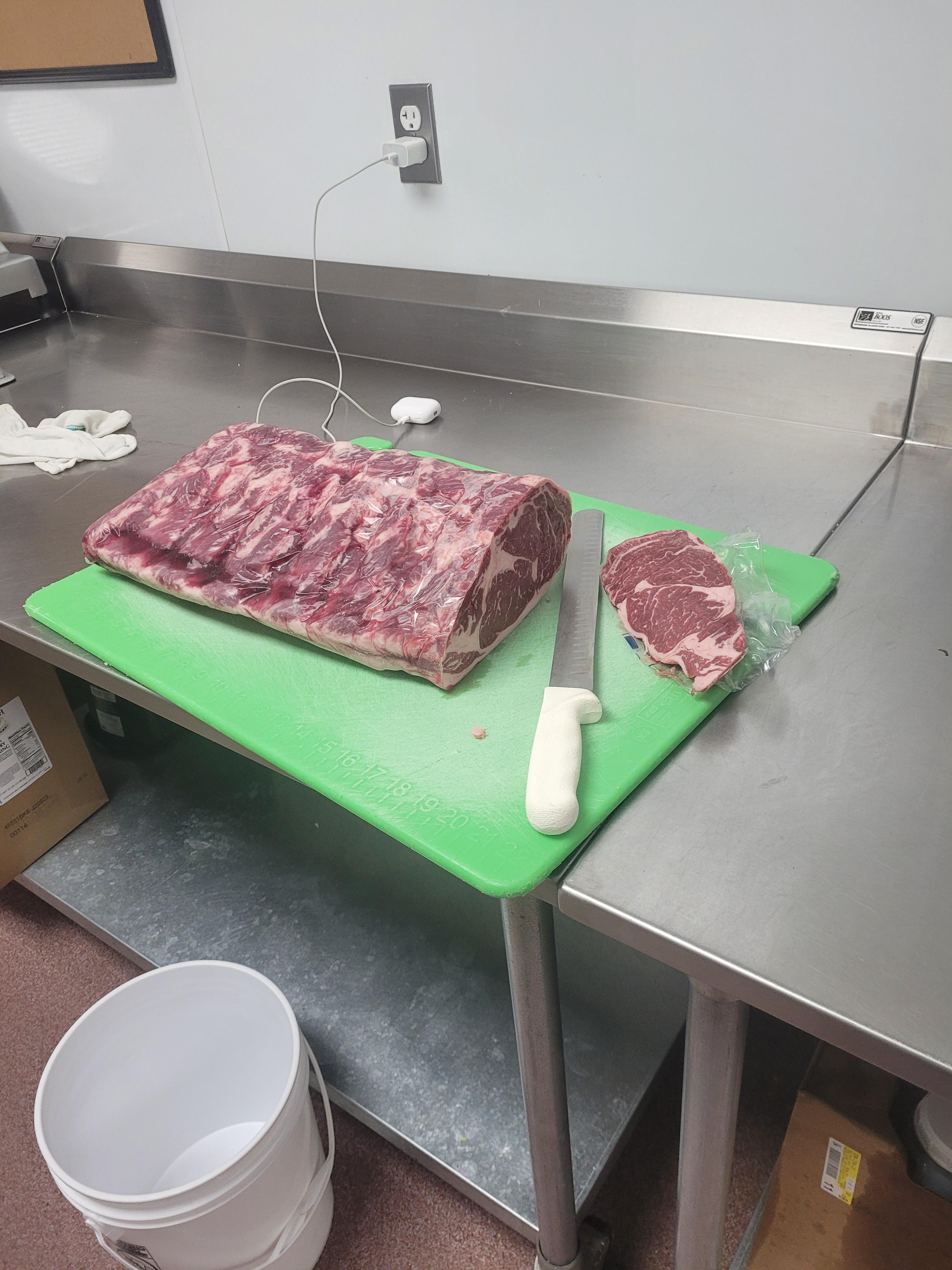 Shit, just saw they’re cutting the meat with the plastic on. I’ve seen it done with burgers from a tube of meat, cause it’s easier, but never prime rib.