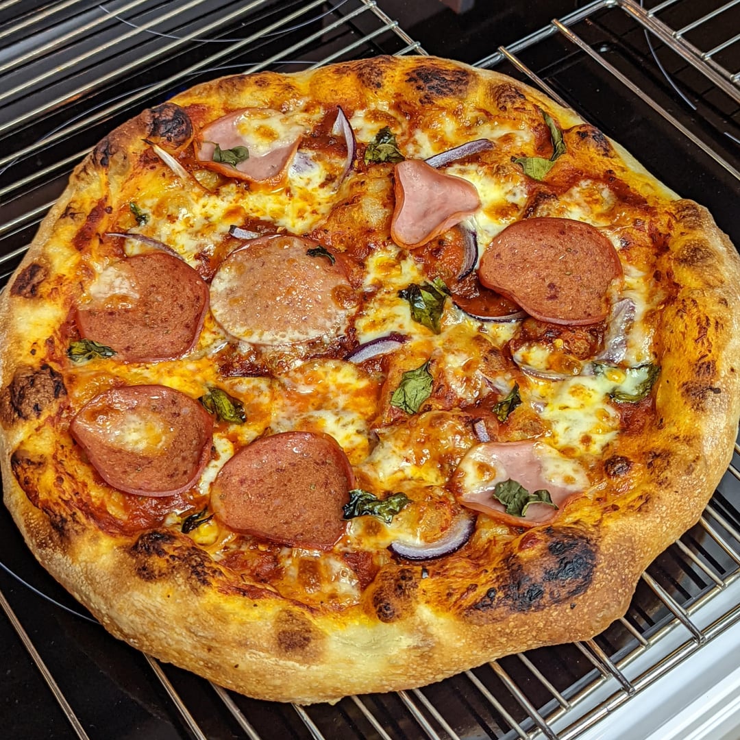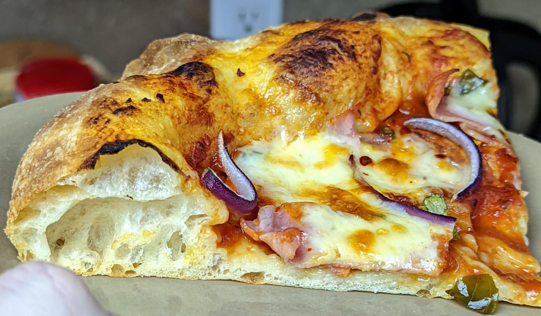 50% poolish, 72% hydration, 2% salt, 0.4% IDY, 2.85% Olive Oil, 1% sugar.