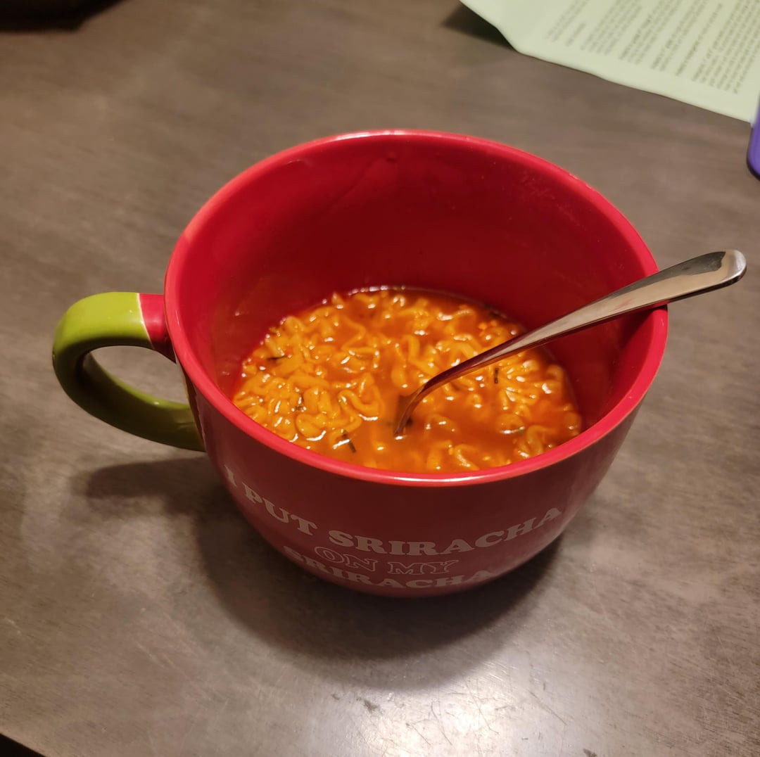 Yeah, the package says to pour out like 90% of the water, it’s not meant to be brothy. Not that it really matters. I pour the noodles into the strainer, and then back into the pot I boiled the noodles in and then kind of sautee the sauce onto the noodles with just a bit of the water. It kind of cooks it into the noodles and it’s wayyy hotter this way as well. I get a little crazy and add black and cayenne pepper. Sometimes a little pat of butter and extra sesame seeds. I’d bet it’s good with an egg, some cheese or green onion.