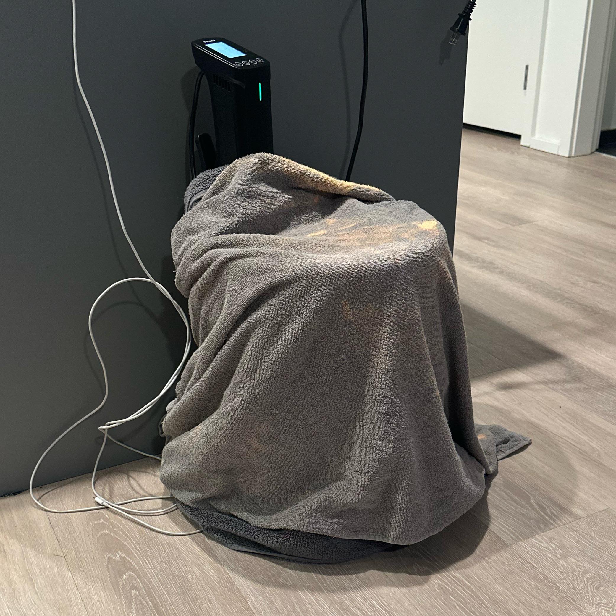 Got myself a ridiculously cheap whole eye of round. Trimmed it and sliced it into 10 good thick steaks. Going to cook them at 56C for the next 48 hours or so and got them all cozily wrapped in old towels for some extra insulation. Aiming at having some nice tender steaks ready to go from the freezer than cost me about C$2.50 a piece.