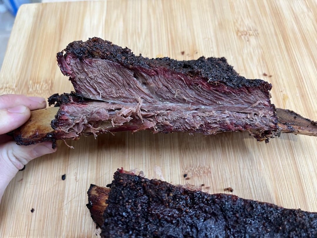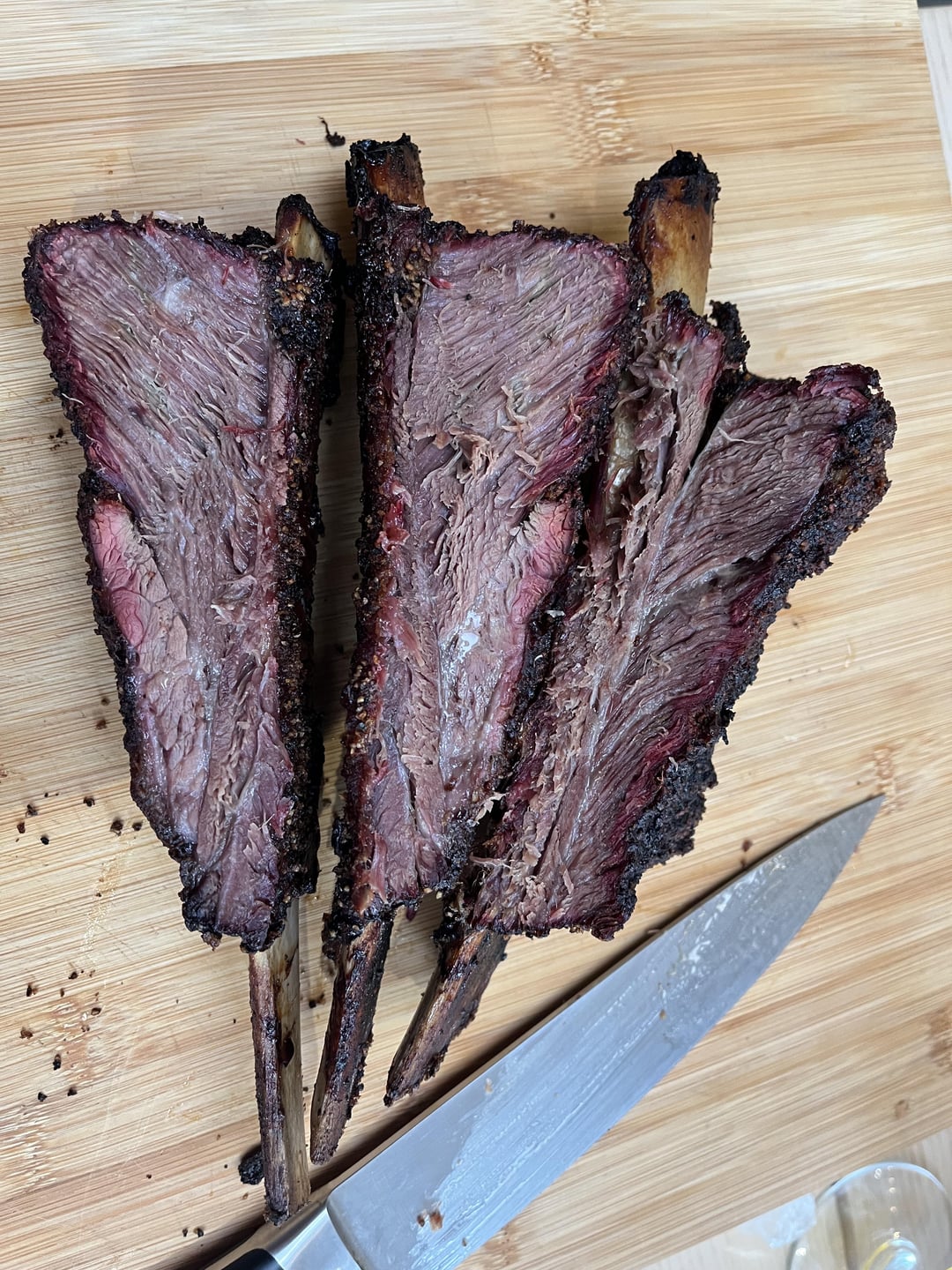 3.9lbs Black Angus ribs. 11 hours unwrapped at 250F, rubbed with Meat Church Holy Cow. This was probably the best thinv I ever cooked. The bark was fantastic, the meat was juicy and I wanna make it again tomorrow.