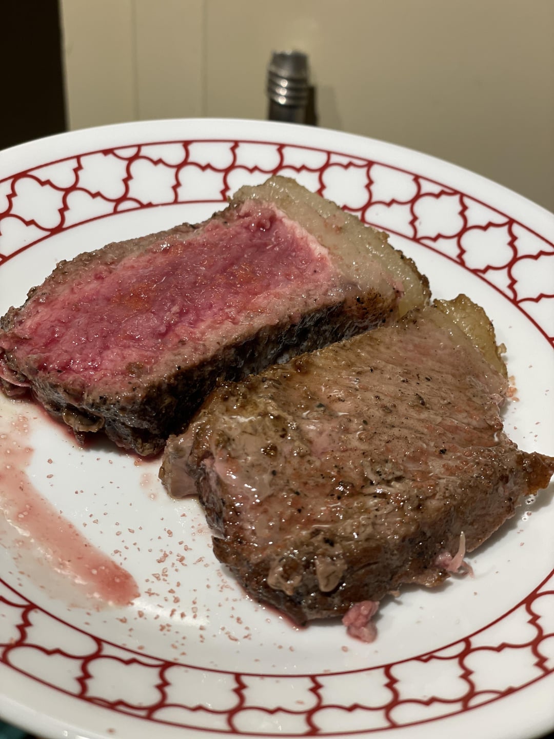 Good! Now, get your pan hotter and get a crust. Maybe then take it off heat and baste with butter, garlic, and herbs. Getting there!