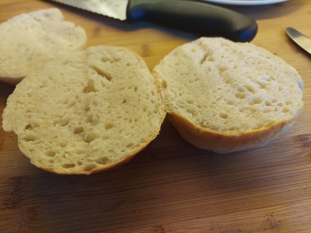 Then for the boil I use more baking soda than they call for, maybe 3-4x more. And I give each side of the bagel a full 60 seconds. The holes should now be close to their final size and more likely to look reasonable.