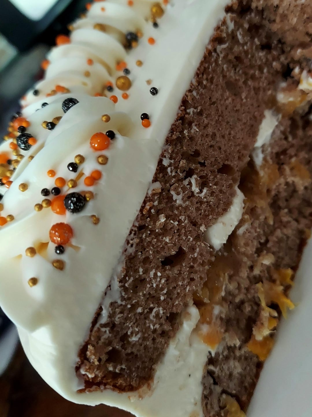 Made a spice cake with peach filing and cream cheese icing as a bday cake.