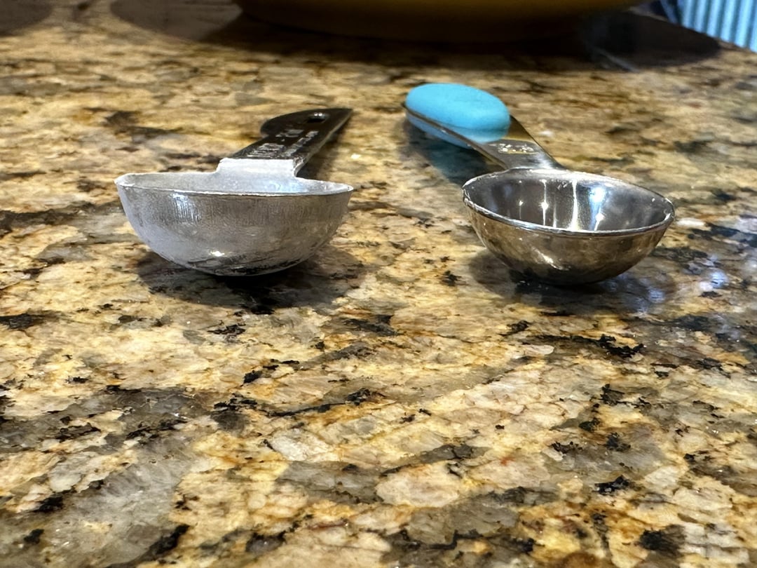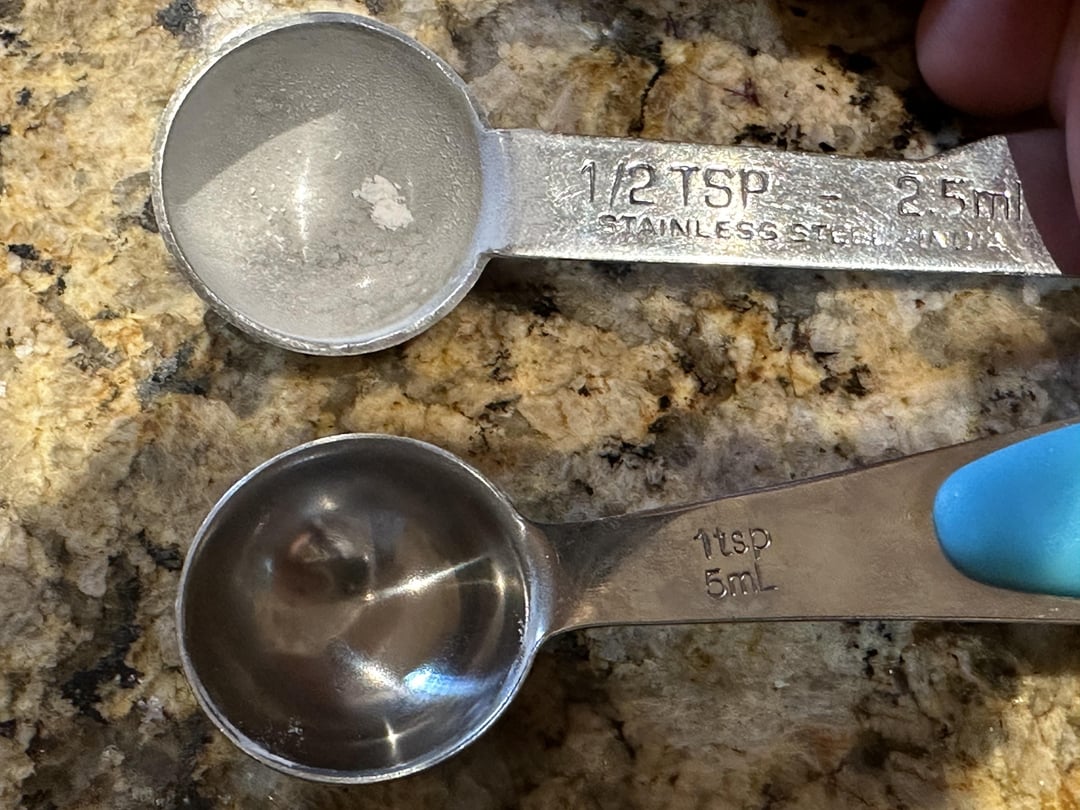 Hell, if they weren’t labeled, looking at the size of the bowl I’d assume the 1/2 tsp is actually larger than the 1 tsp. Maybe it was supposed to be 1/2 TBSP and was incorrectly labeled.