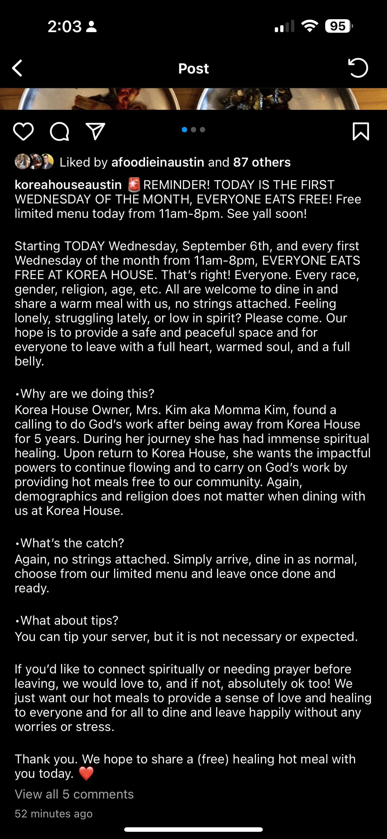 This is is a glimmer of old Austin.. like Veggie Heaven feeding the homeless every single day.