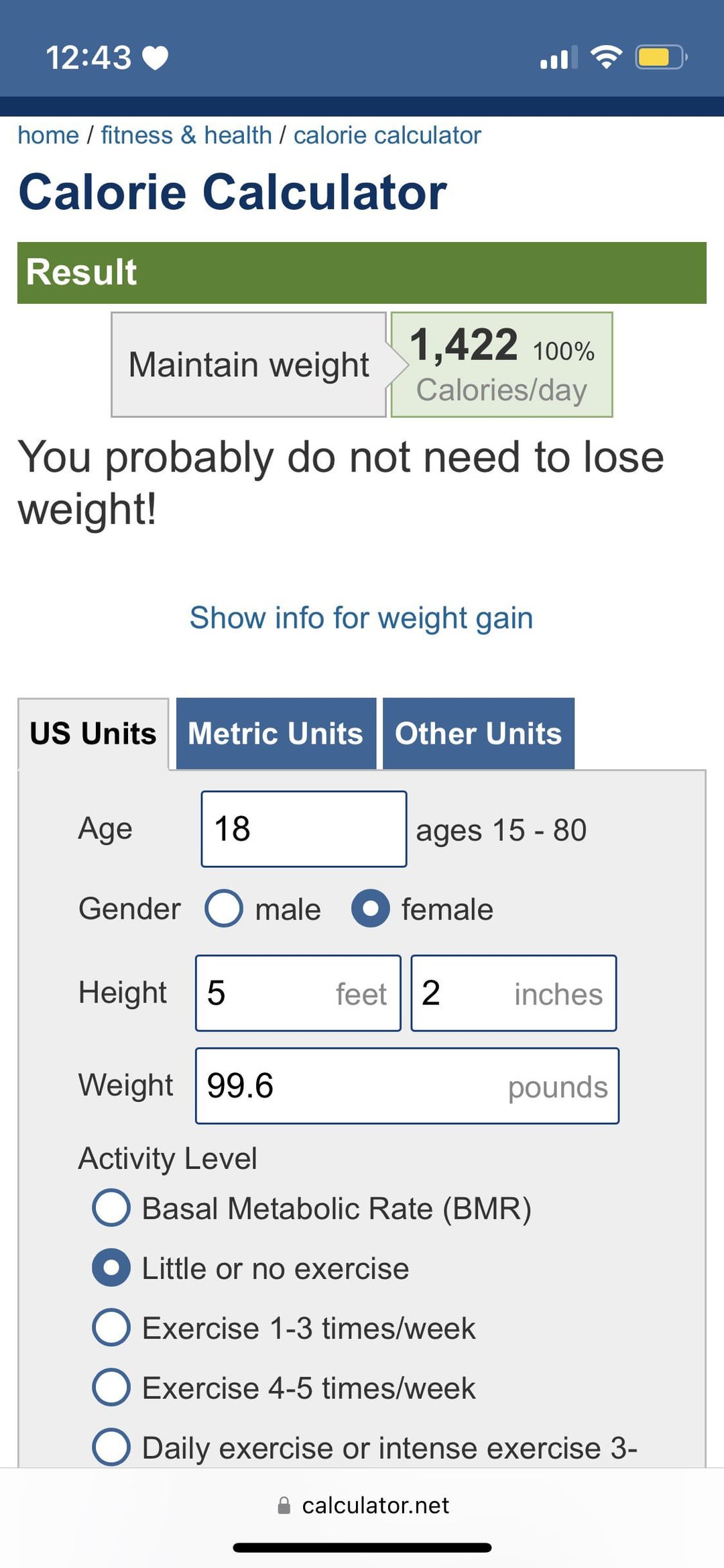 I’m very small as it is but I’ve noticed some weight gain and would like to be back where I was. Could anyone give me a deficit calculation? I’m roughly 5’ and 100lbs. I know I’m in healthy range and blah blah blah. I’m careful and too lazy to have an ed and I understand that food is good. I just want my pants to fit again.