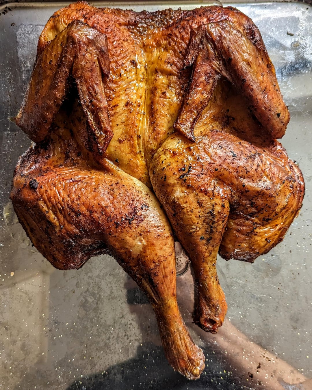 Right side is a full smoked spatchcocked, habanero rubbed, chicken.