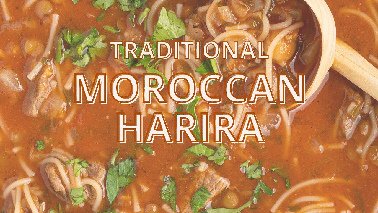 Follow these simple steps at home to make my Dad’s traditional Moroccan Harira, a warming soup made to break fast during Ramadan in Morocco (Iftar). This homemade soup combines chickpeas, beef, or lamb stew meat, and rice. It’s prepared stovetop, and takes just 45 minutes to prepare.