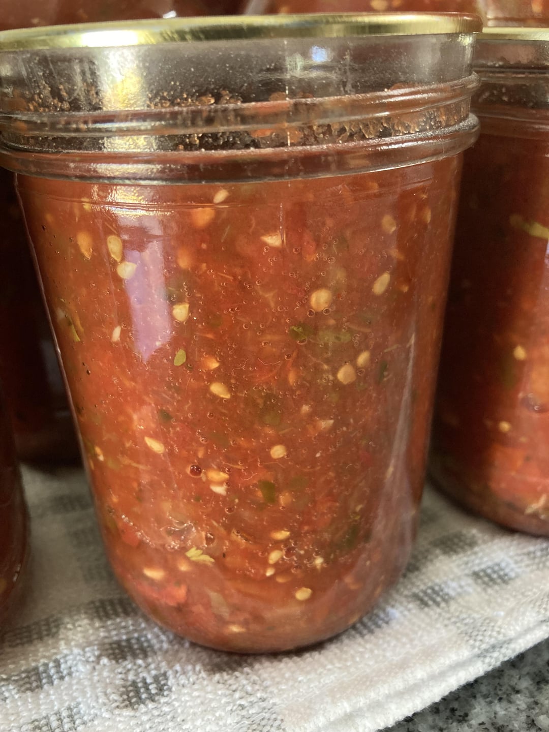 First time waterbathing a large amount of salsa with ingredients from my gardened. Canned them 5 days ago in pint jars and noting some bubbles that may or may not have been there at first ( I don’t know it the bubbles are new or not as it’s been on the counter since canning out of sight). Salsa has a lot of tomatoes, green peppers, poblano, onion, garlic, cilantro, salt and has lime juice, cans sterilized for 15 minutes in rolling boil and then water bathed for 15 minutes.