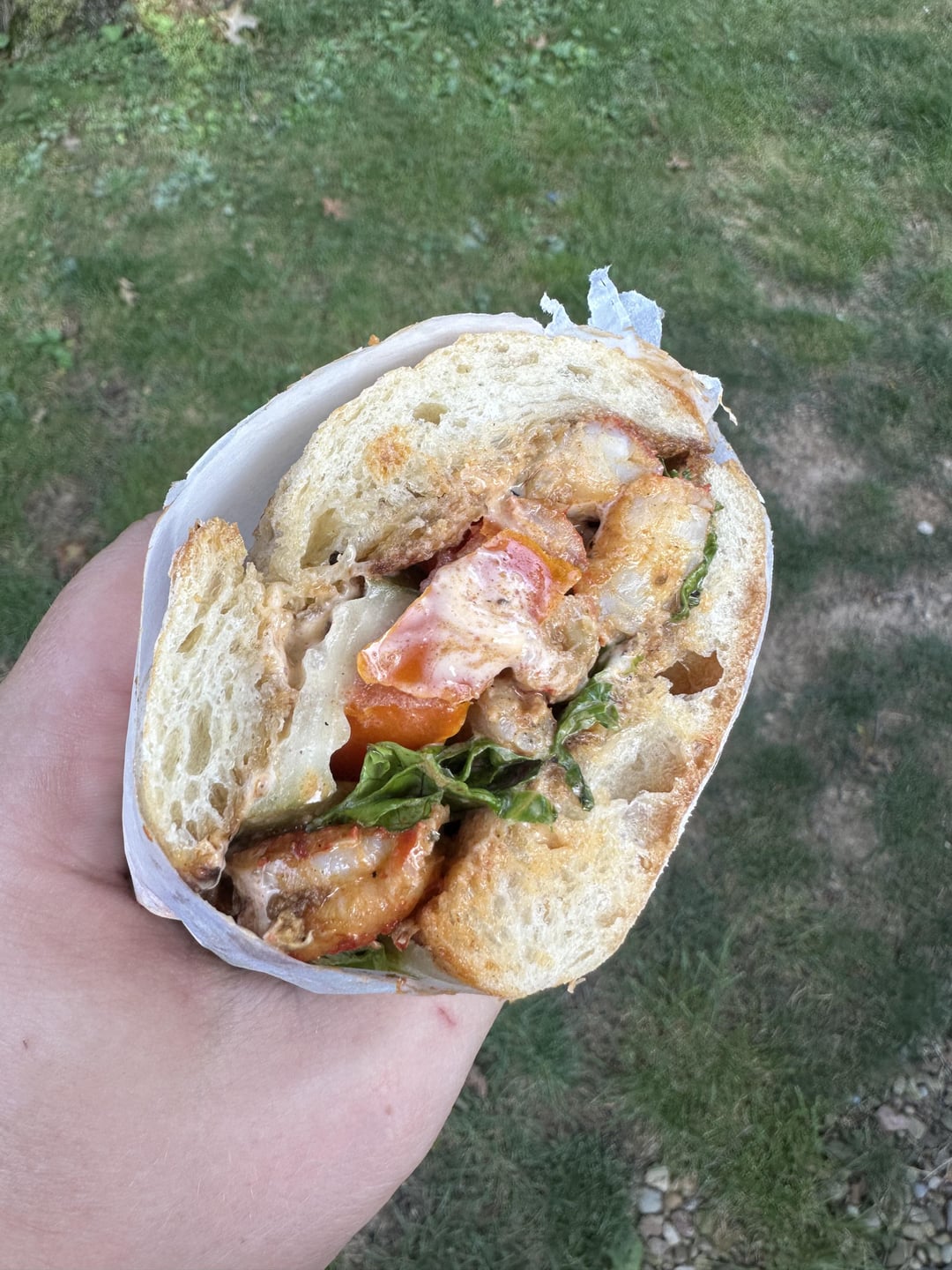 Couldn’t get fresh tail – frozen crawfish tails tossed in a lil hot sauce & old bay. Seared then tossed on a crispy roll with lettuce, spicy old bay mayo, lettuce, & tomato.