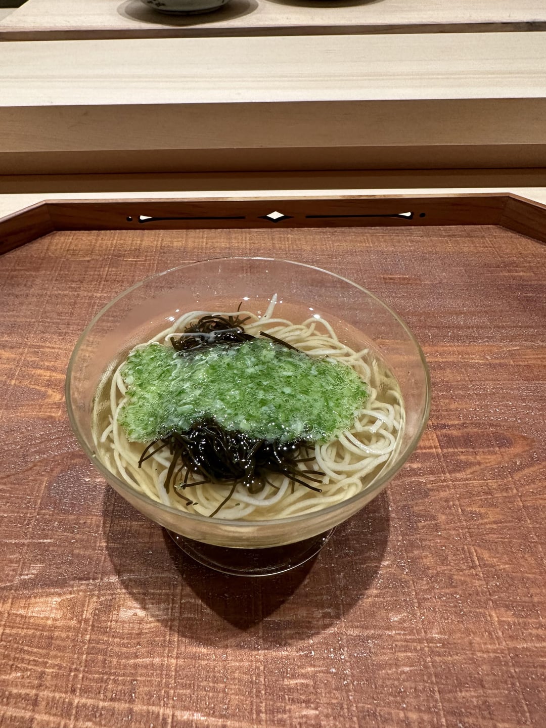 Soba with okra and Junsai – light refreshing dashi complimented by the sharp, sour leafy taste of junsai. Can taste the texture of buckwheat from soba noodles (4/5)