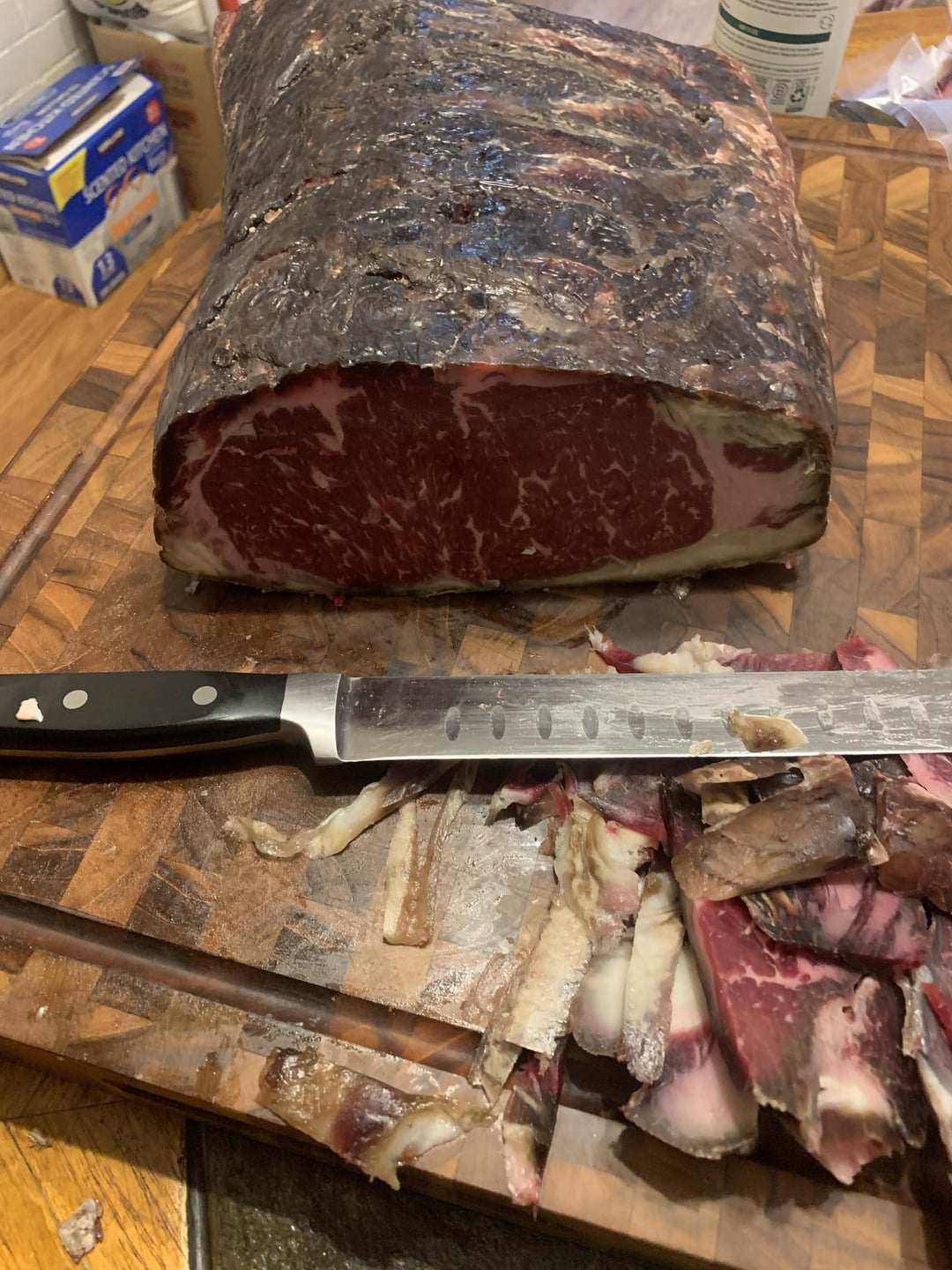 The dry age! The Maillard crust is A+! The internal color/cook is spot on! This is Gold Star ⭐️ work! 11/10