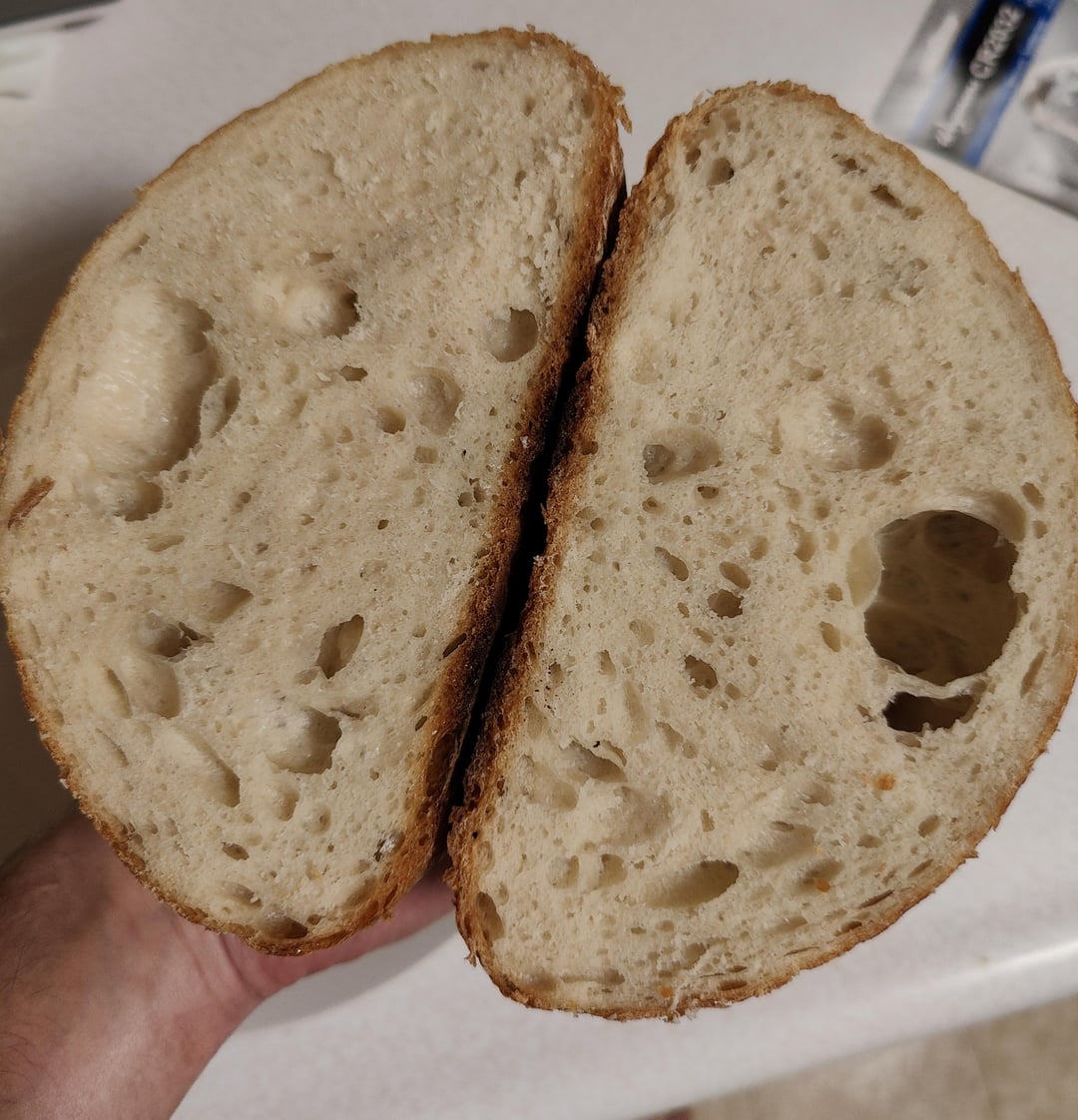 I’m pretty happy with it! I just followed Adam Ragusea’s “Basic Bread” video, which gets you a pretty nice boule-style loaf with basically no measuring and no kneading. The big bubbles are nice, but the areas in between them are pretty dense and chewy, is that caused by a proofing issue? Or maybe a temperature problem? I’m not an expert in bread (and have no interest in becoming one) but I would like to at least be able to make this kind of bread again and have it come out better. The texture is a bit off but the flavor is awesome and it makes INCREDIBLE toast. There will be more Mr. Loafys in the future!