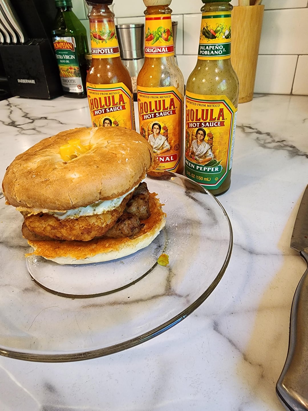 Triple cheddar (plus some shredded parm) fried into the bagel inside until crunchy