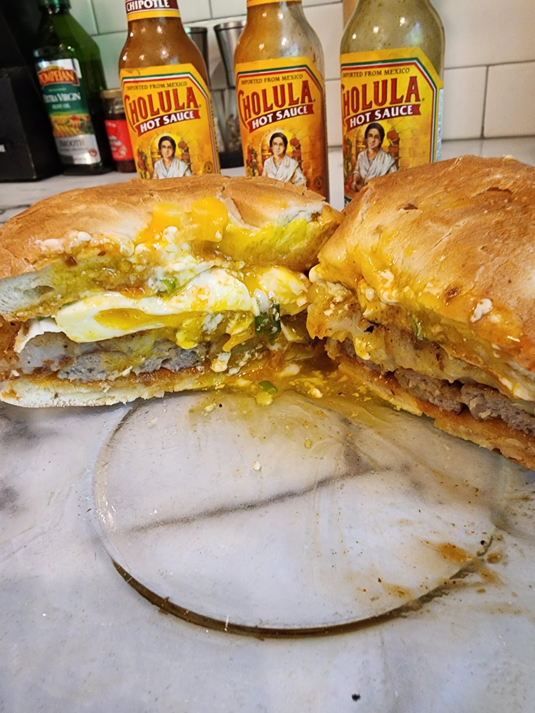 Looked like and egg bomb went off when I cut it. Very messy but this sandwich came to party and F stuff up not look pretty.