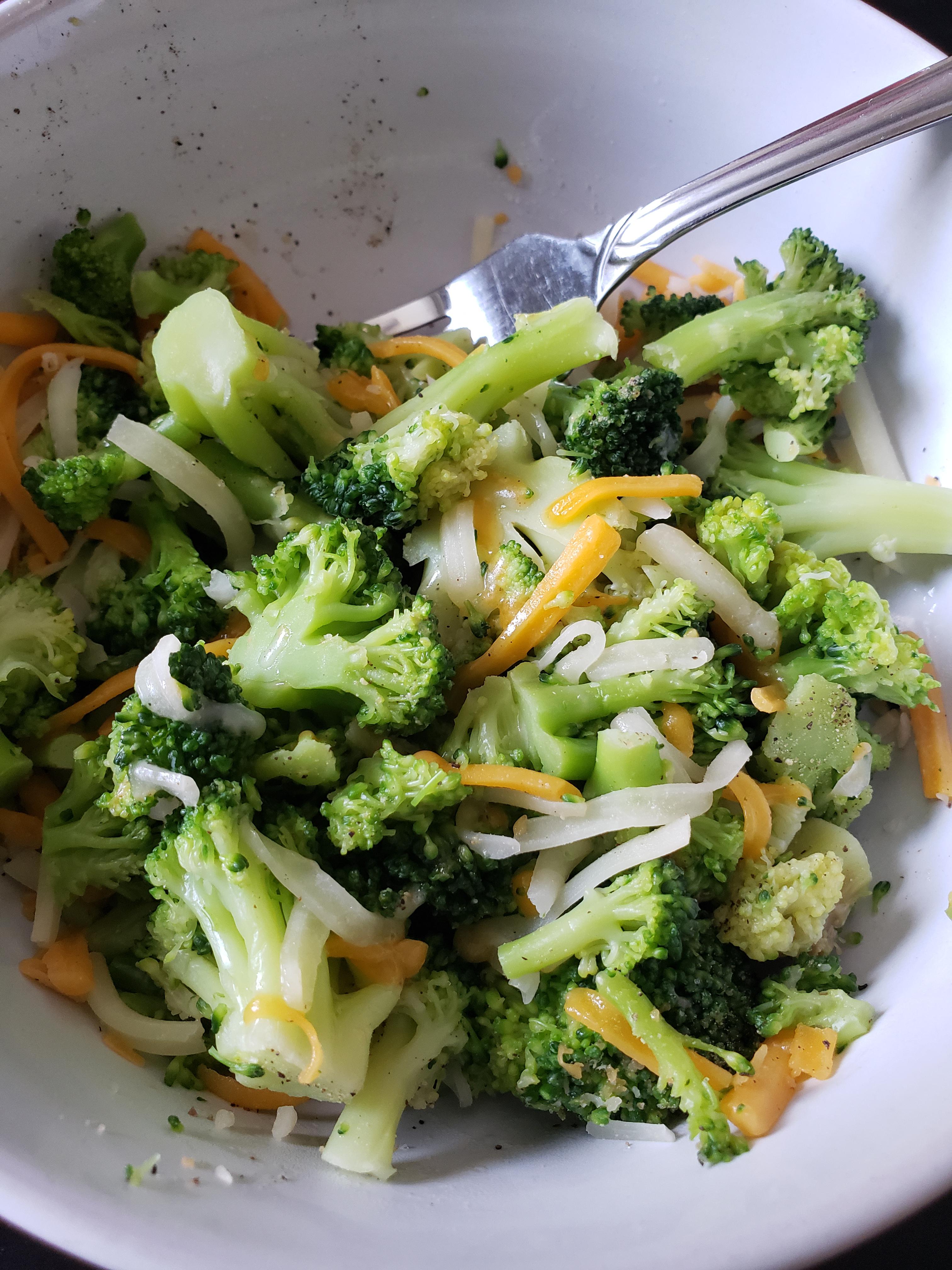 Big bowl of steamed broccoli and shredded cheese – 120 cals