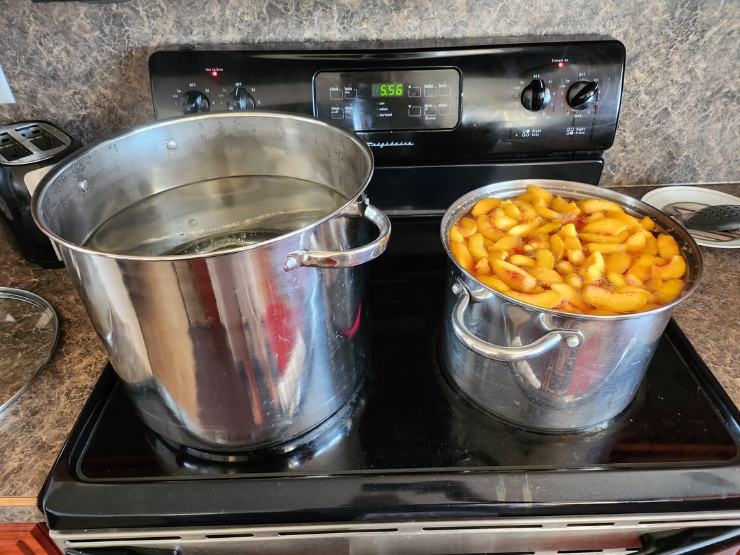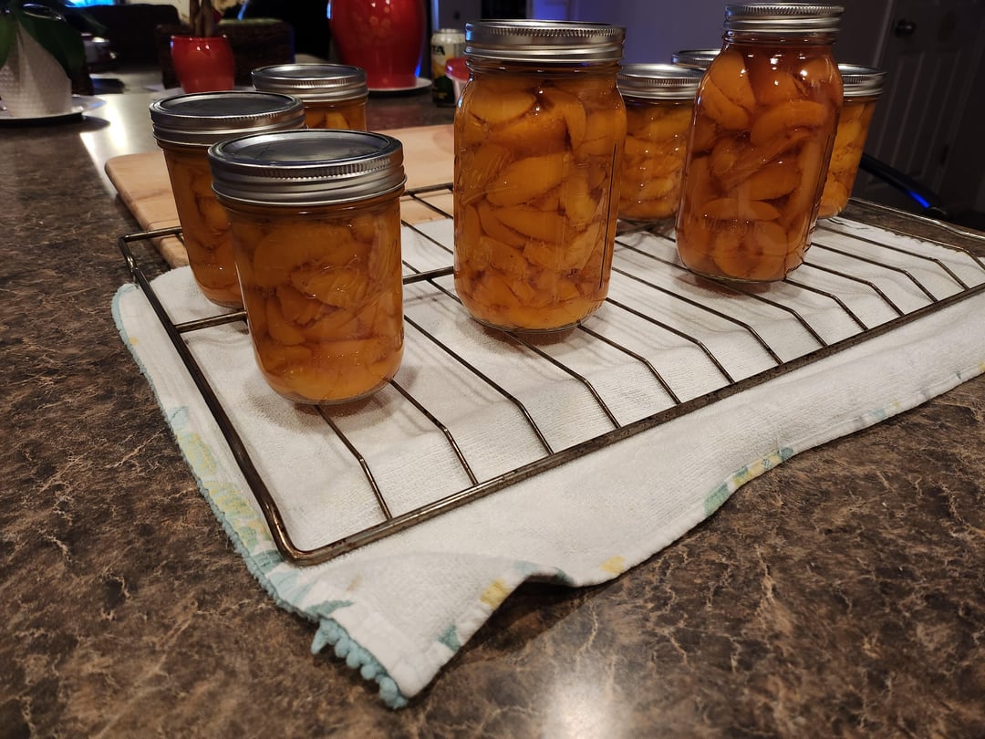 Overflowed my pot, so there is about 1.5 lbs in the fridge, which will be used for peach cobbler tomorrow.