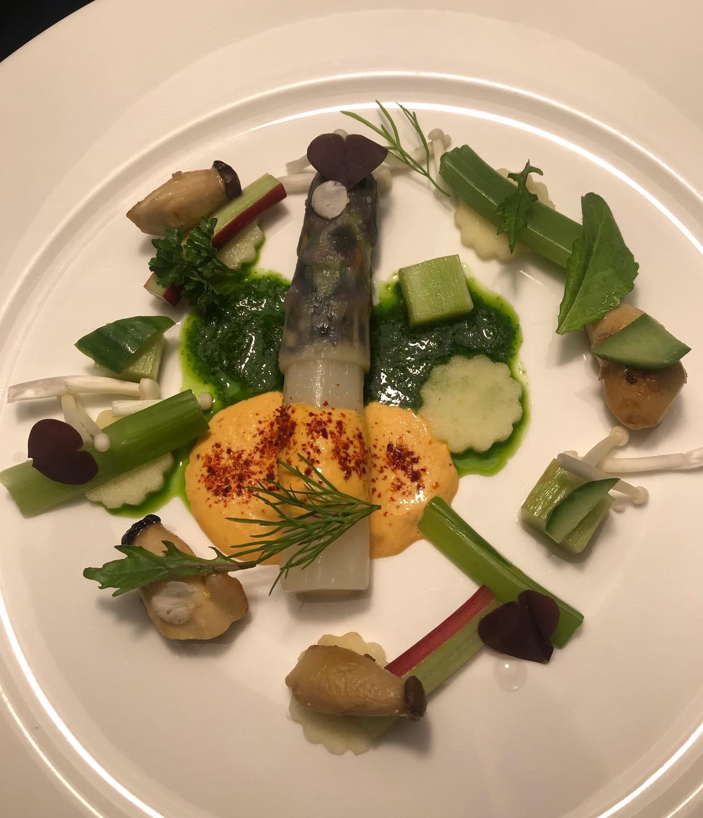 1. Am I tripping? I don’t see anything that looks like asparagus. Also I’m sorry but that grey sea slug looking thing in the middle of the plate is insanely unappetizing
