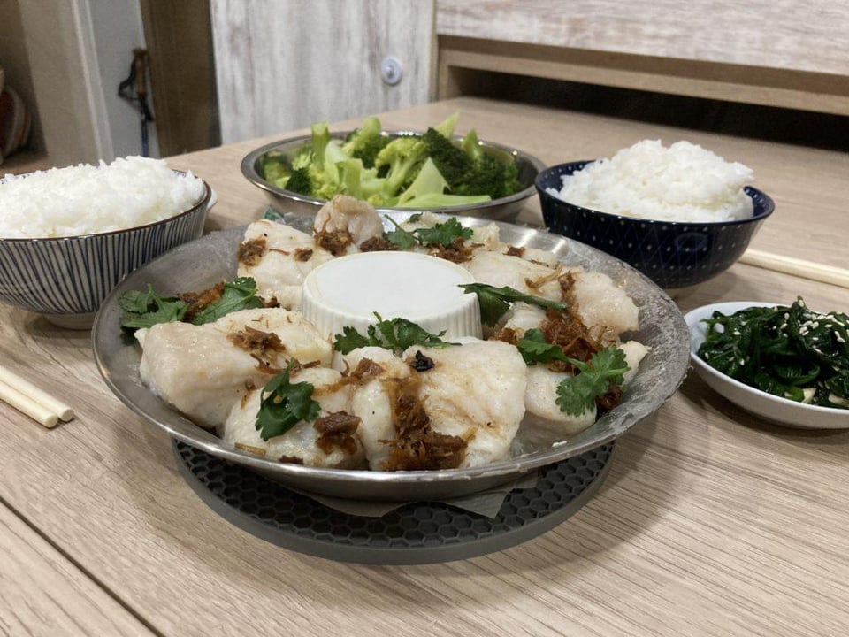 Full recipe: [https://servedwithrice.com/doom-tower-redux-steaming-fish-in-a-rice-cooker/](https://servedwithrice.com/doom-tower-redux-steaming-fish-in-a-rice-cooker/)