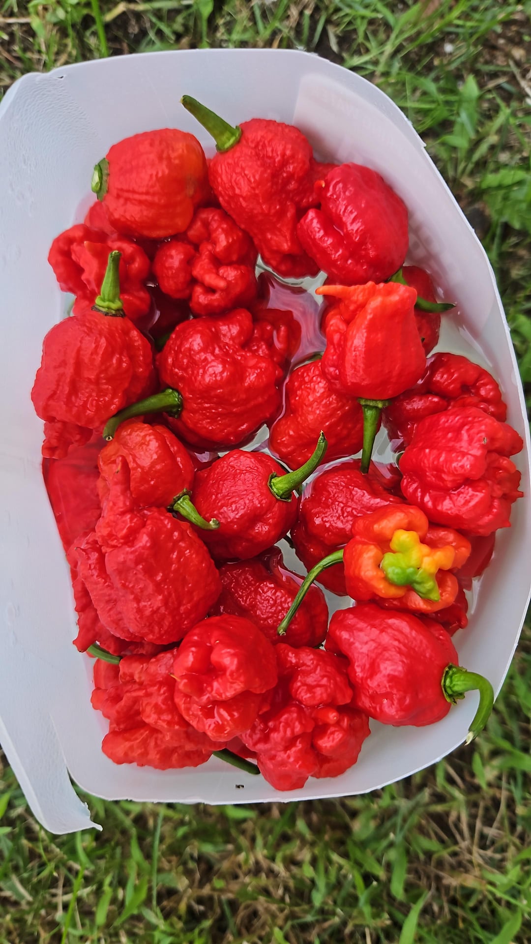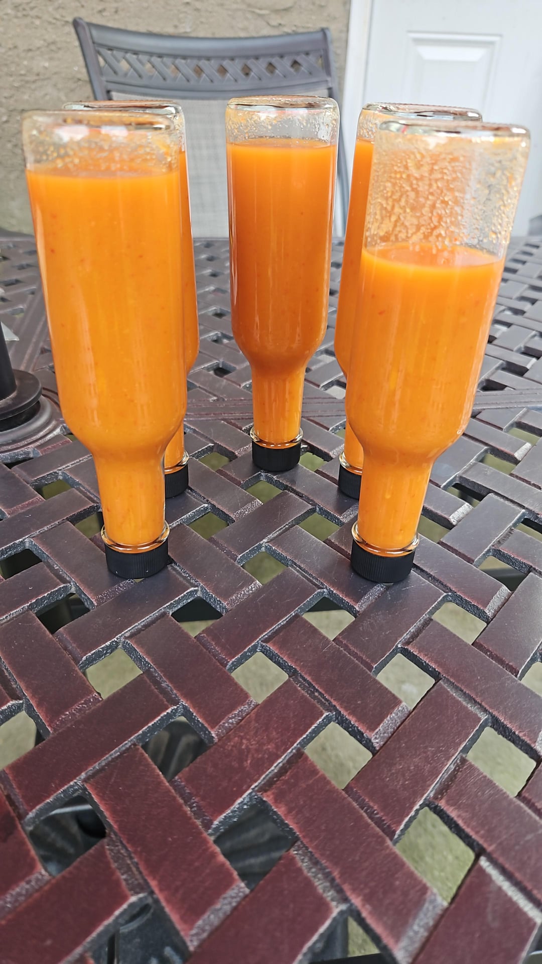 Made some very interesting-tasting sauce yesterday.6 reapers Half red onion half carrot one home-raised bell peper small ny honey Apple cider vinegar 1 lime 1 grapefruit garlic head water half a pack of passion fruit frozen pulpby edom31 Write A CommentYou must be logged in to post a comment.