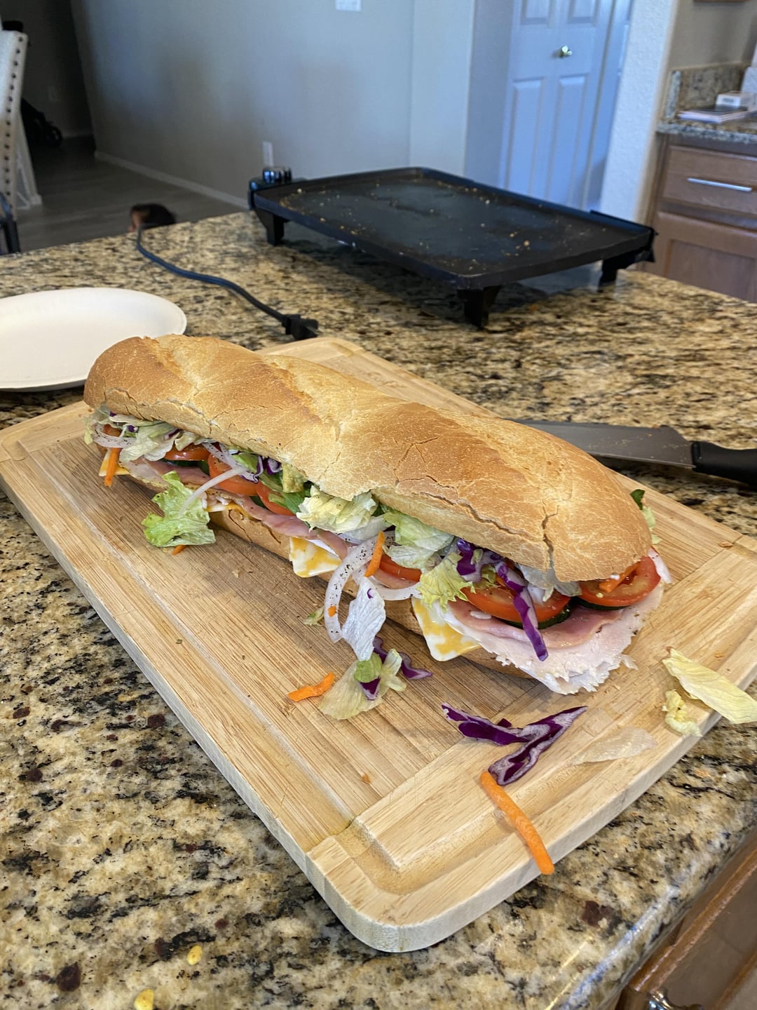 Made a beautiful sun for me and my wife, just for the Cardinals to let me down again. Peppered Turkey, honey ham, Colby-Jack cheese, lettuce, tomato, cucumber, onion, Duke’s and spicy brown mustard