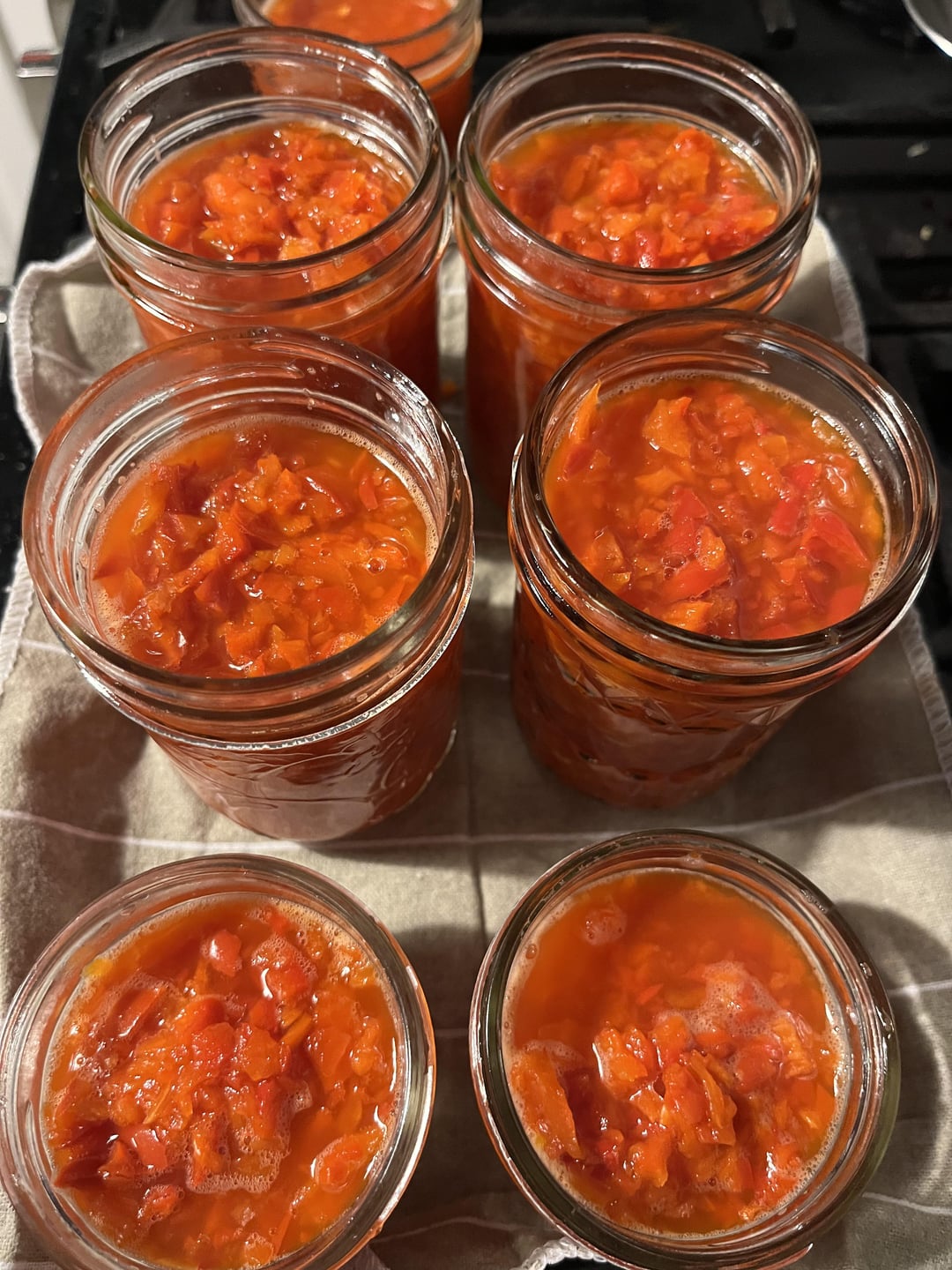 We made: whole tomatoes, tomato juice, red pepper jelly, spicy red peppers in vinegar, blueberries in a honey syrup, salsa roja and ketchup.