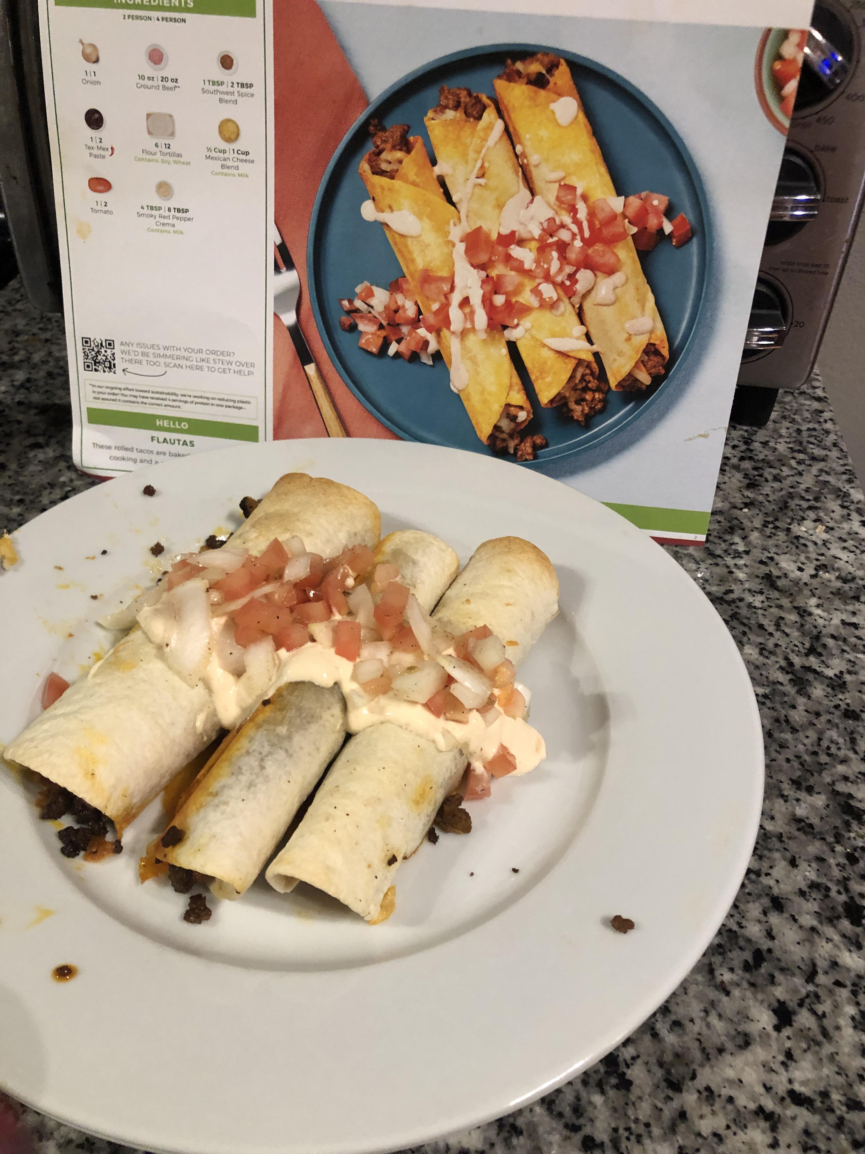 Comparison with the photo on the card. I think mine turned out looking very similar. As for the meal itself, I’m not really sure what the difference is between these and the taquitos, but they were tasty nevertheless 🙂 by DanielaThePialinist 2 Comments Quick_Grade_594 2 years ago Depression meals. warrenkitchenwitch 2 years ago We had these last week and really enjoyed them.Write A CommentYou must be logged in to post a comment.
