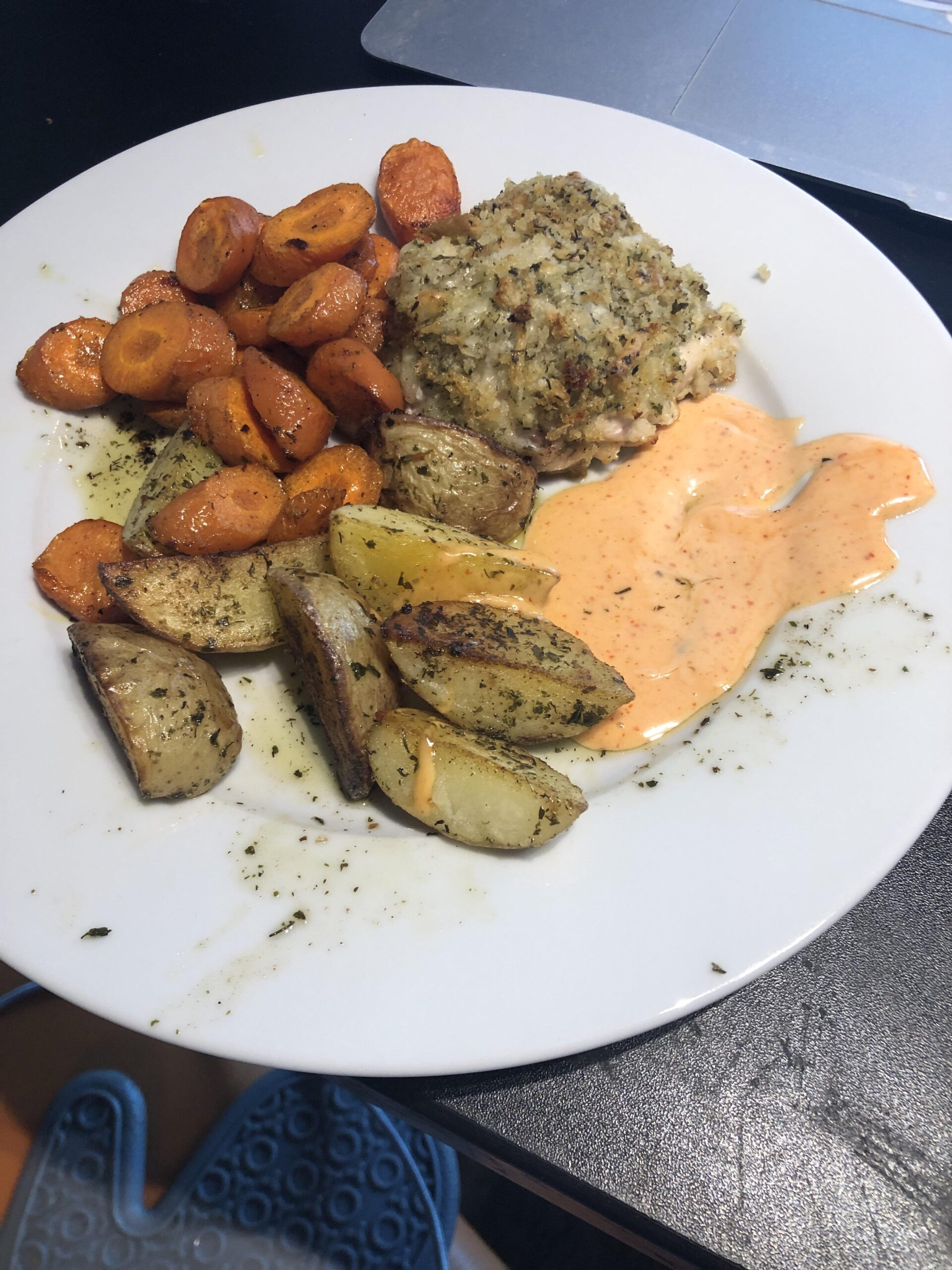 Ok, so I haven’t actually eaten yet tonight (I have an event tonight and will eat afterwards, but I cooked just now) but I’ve had this meal before and it is delish!! I live alone so both servings are for myself, second serving is tomorrow’s lunch 🙂