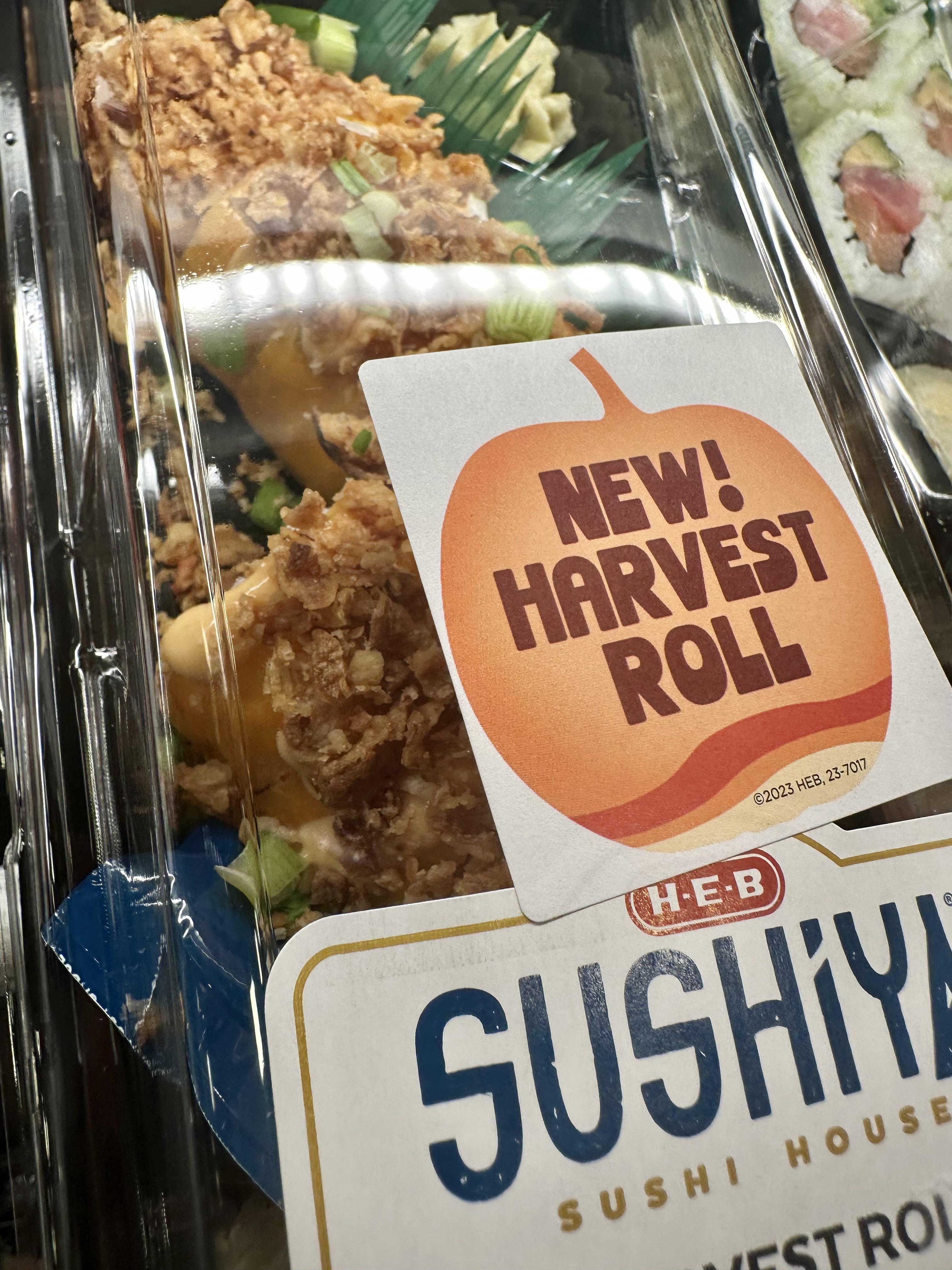 Actual information: https://www.heb.com/product-detail/h-e-b-sushiya-harvest-sushi-roll-10-pc/10291011