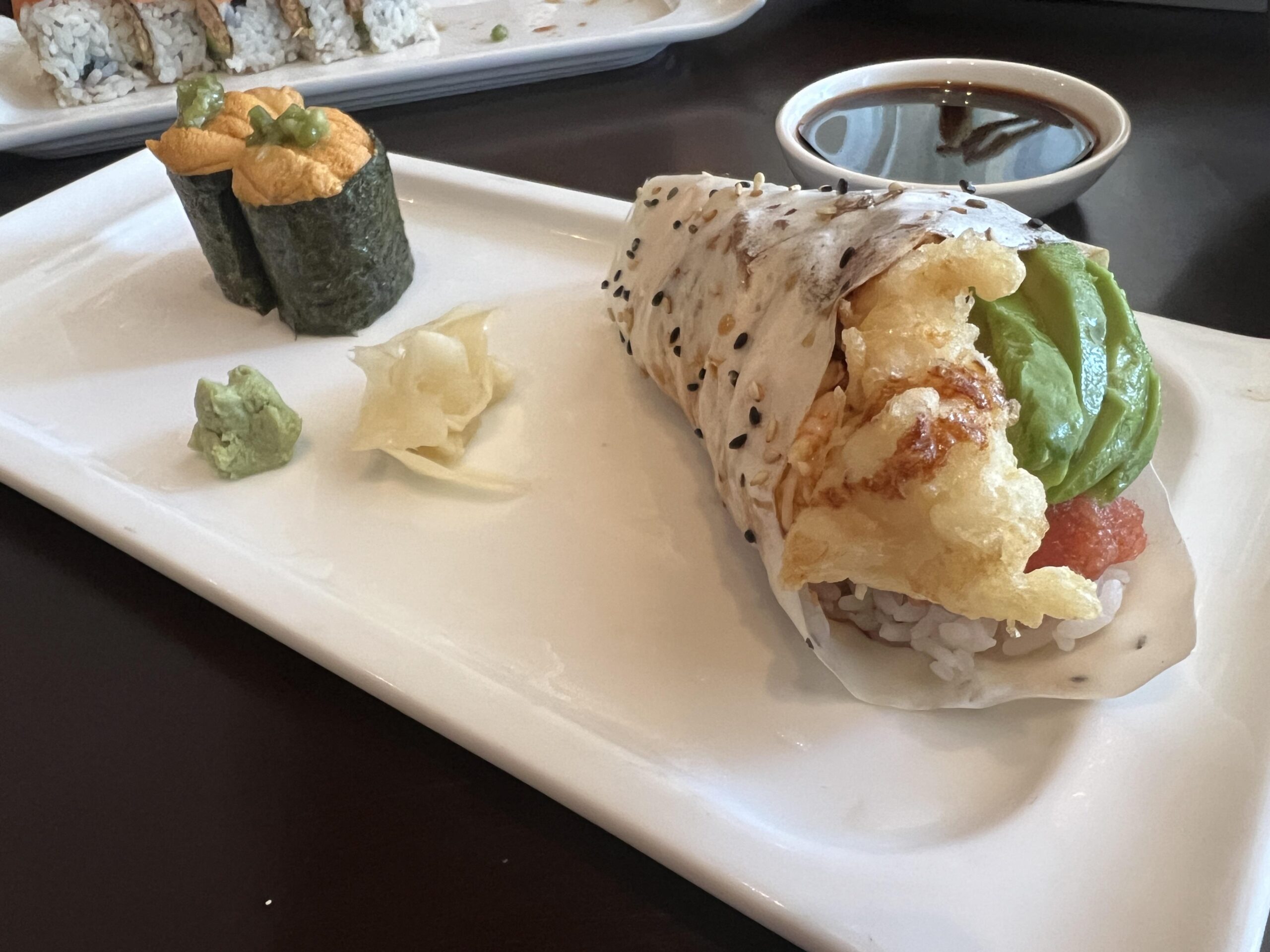 Always get the Tina’s Hand Roll. Spicy Tuna, Avocado, Shrimp Tempura. Good size as well.