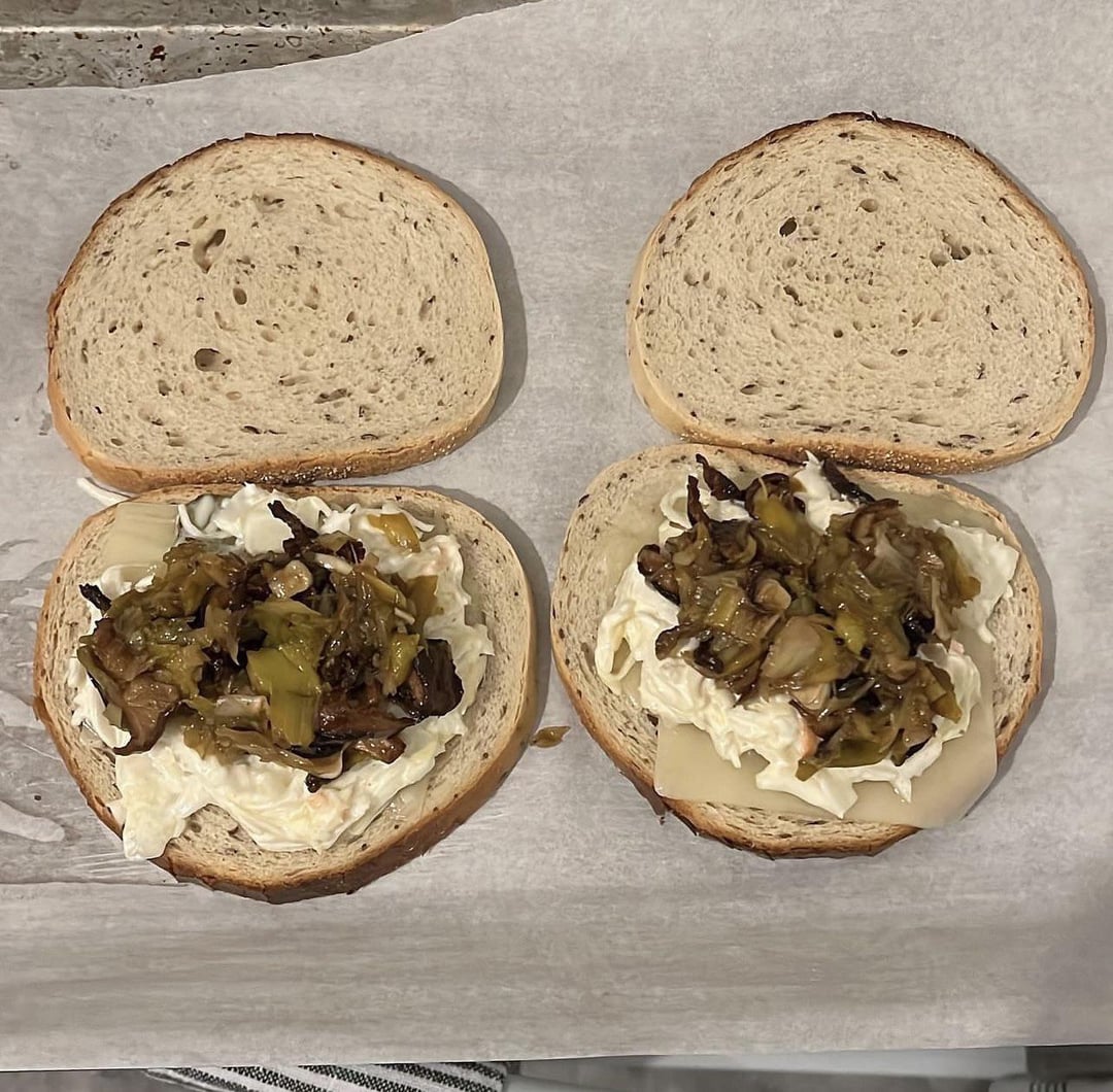 Second sandwich I made a couple of versions because I really liked the roasted leeks and shiitakes with the bbq brisket